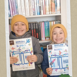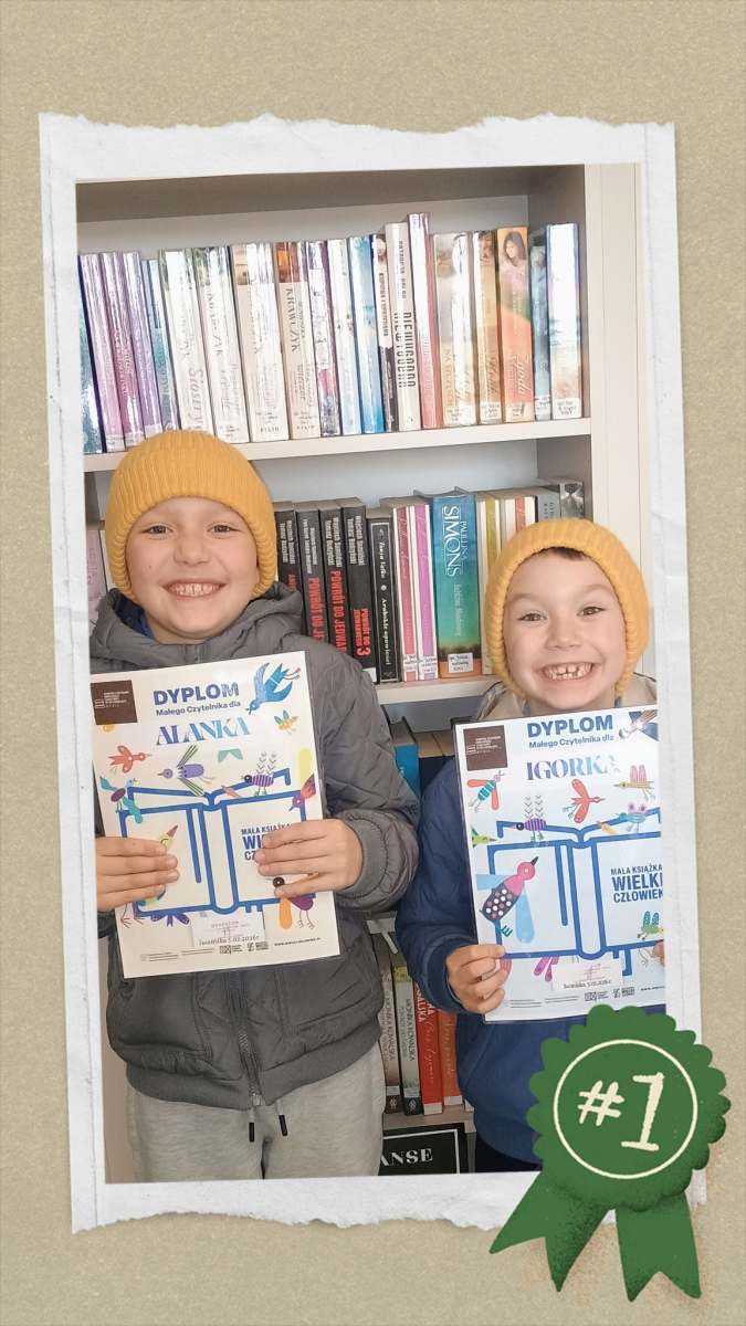 Bracia Alanek i Igorek są już Dyplomowanymi Czytelnikami!...Nasze serdeczne gratulacje i brawa za dopełnienie wyzwania w akcji „Mała książka- wielki człowiek”. Chłopcy bardzo chętnie odwiedzają naszą instytucję. Dziękujemy za wytrwałość i cierpliwość włożoną w zdobywanie naklejek na Kartę Małego Czytelnika dla Was i waszej mamy. Życzymy niekończącej się ciekawości świata i wierzymy, że uda się Wam znaleźć wszystkie odpowiedzi na te pytania właśnie w książkach.