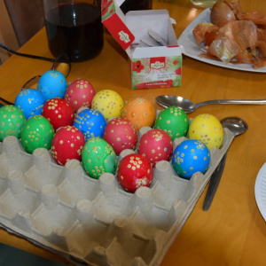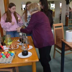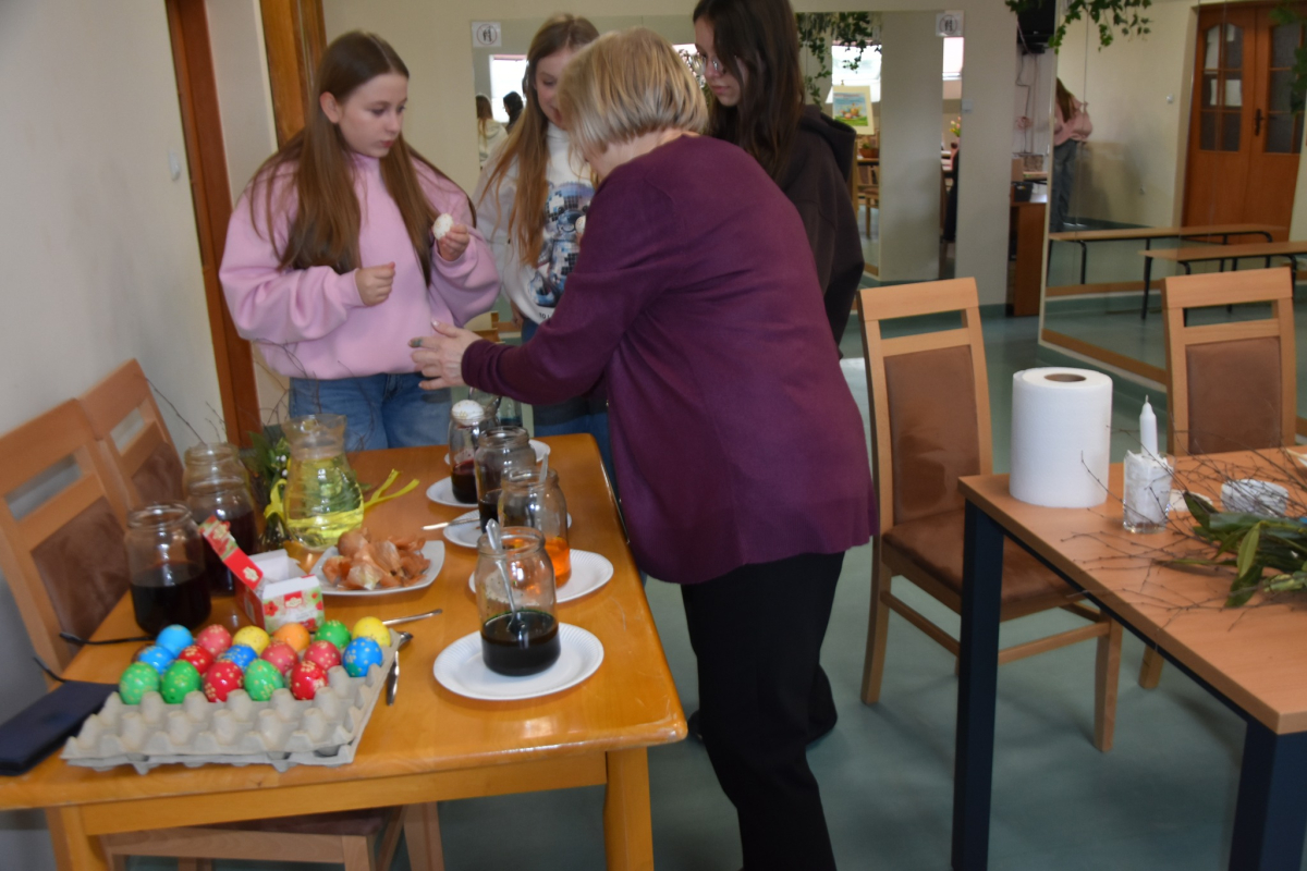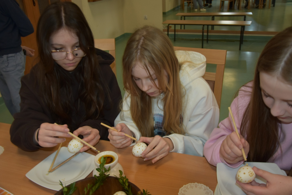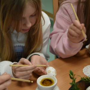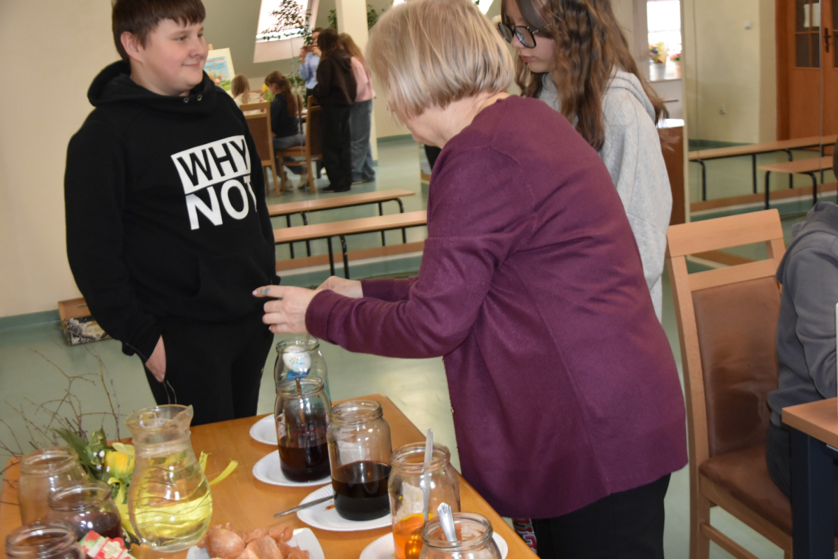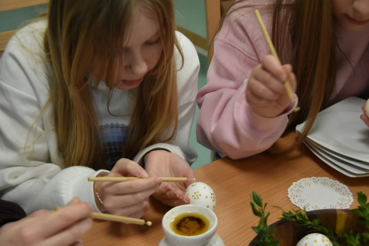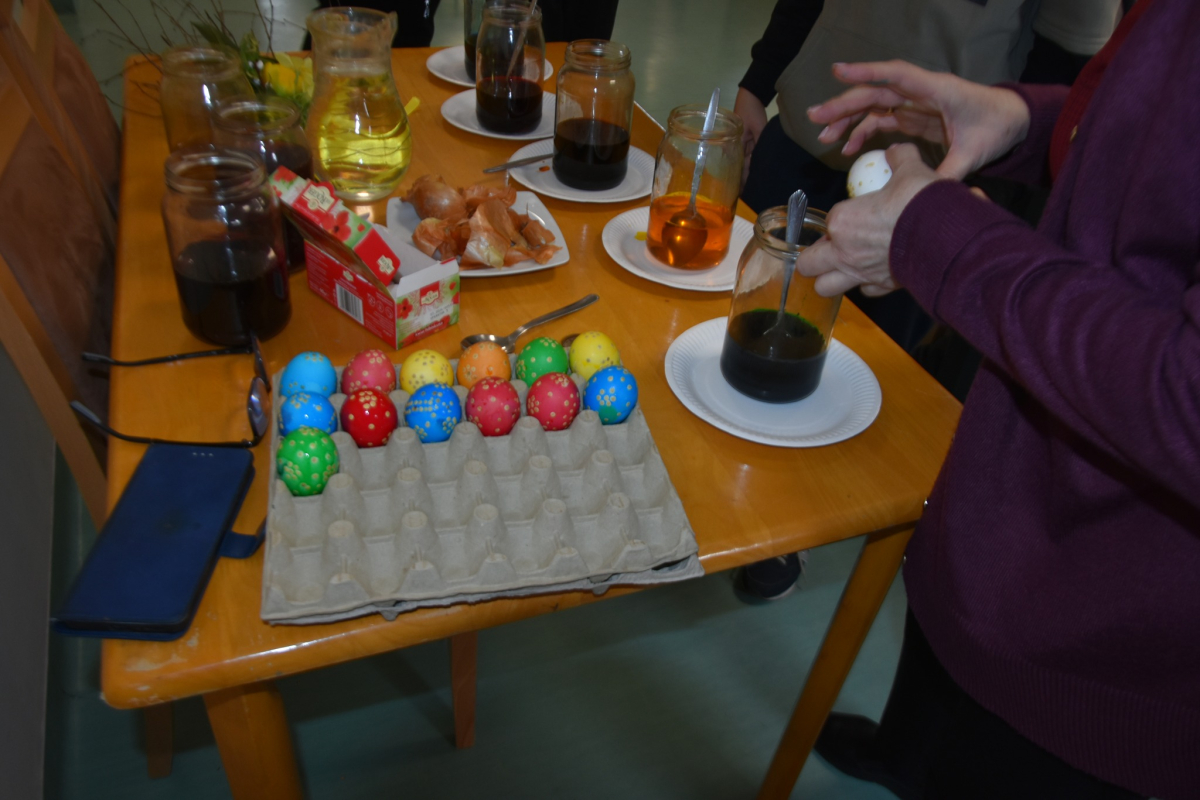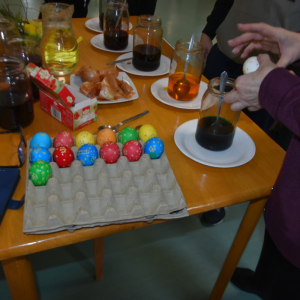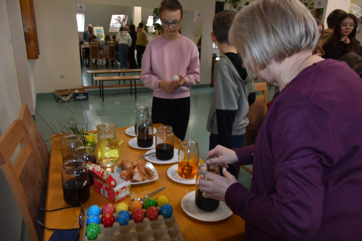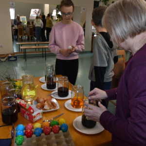 W okresie przedświątecznym Wielkiego Tygodnia nie mogło zabraknąć zajęć popularyzujących nasze tradycje i obyczaje. A najważniejsze i najprzyjemniejsze w tym czasie jest malowanie jajek. Uczyliśmy się malować jajka i tworzyć kraszanki z naturalnych barwników tj. łupin cebuli, kurkumy i kwiatów hibiskusa, ale używaliśmy też chemicznych barwników z których kolory były bajecznie piękne i bardziej intensywne.