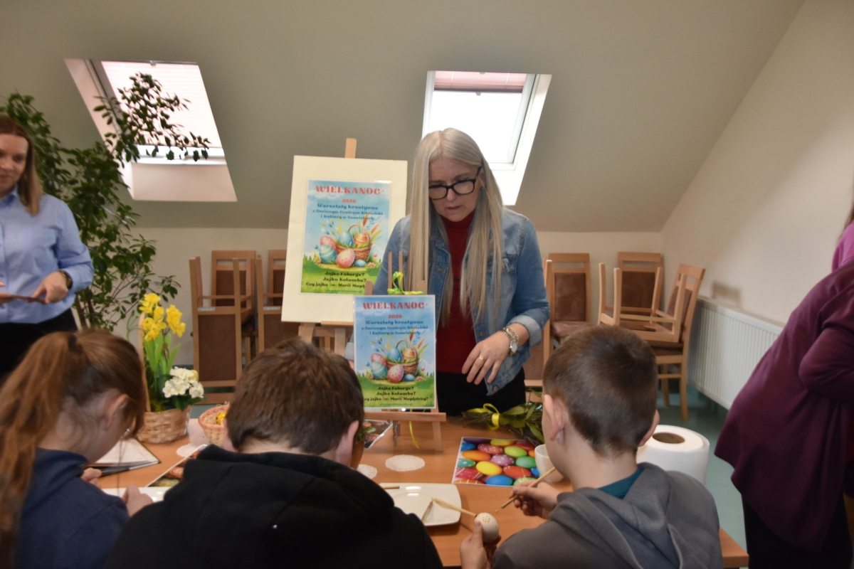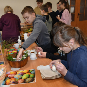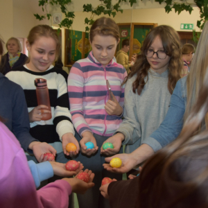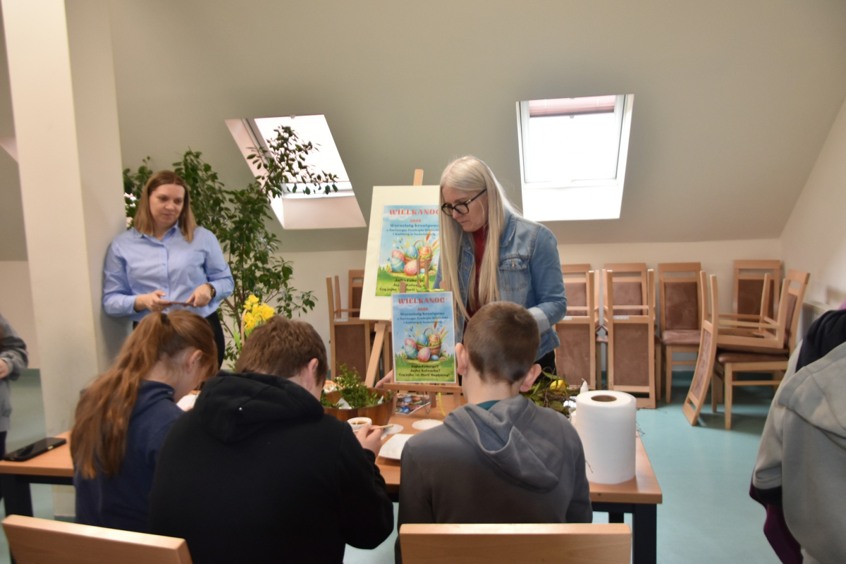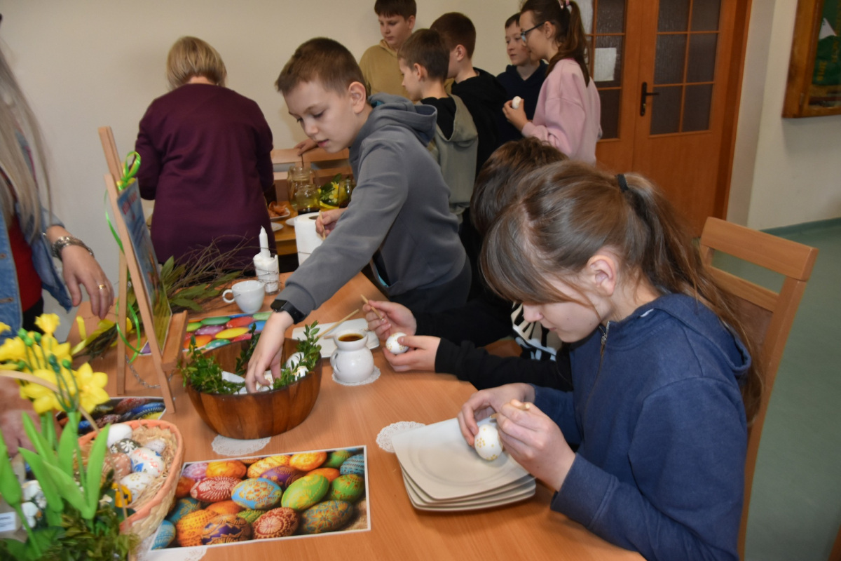 „Warsztaty Wielkanocne z GCBiK w Iwaniskach” odbyły się od rana w poniedziałek 30 marca z klasą 5A ze Szkoły Podstawowej z Iwanisk. W zajęciach uczestniczyło 22 osoby.