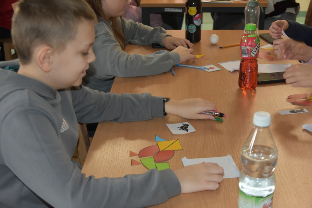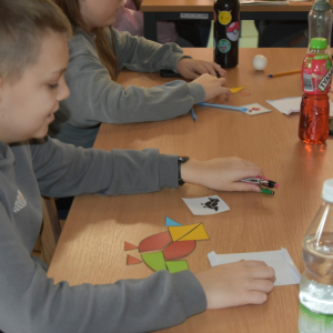 Łamigłówka zwana Jajkiem Kolumba posłużyła nam do ćwiczenia wyobraźni, spostrzegawczości i koncentracji w tworzeniu figur przedstawiających zwierzęta, ludzi i przedmioty.