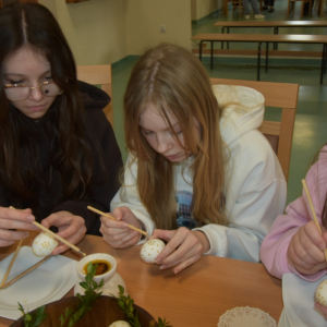 W drugiej części zajęć było trochę wiedzy i ciekawostek: o najdroższych jajkach na świecie czyli jajkach Faberge, o jajkach św. Marii Magdaleny, i o jajku Kolumba.