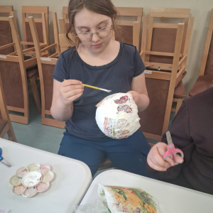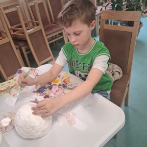 W środę uczestnicy dali upust swojej wyobraźni podczas zajęć plastycznych techniką decoupage. Powstały piękne, kolorowe prace pełne kwiatowych motywów i wiosennego klimatu. Kreatywność nie miała granic!