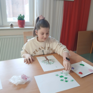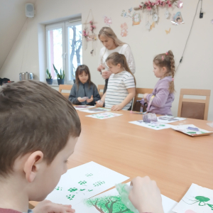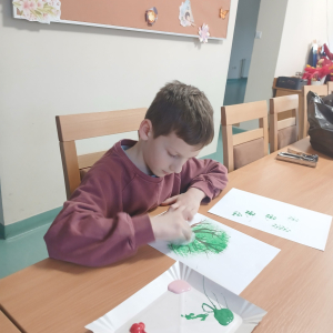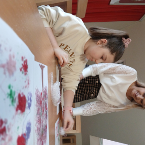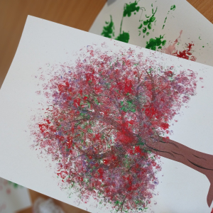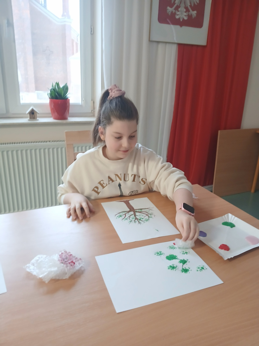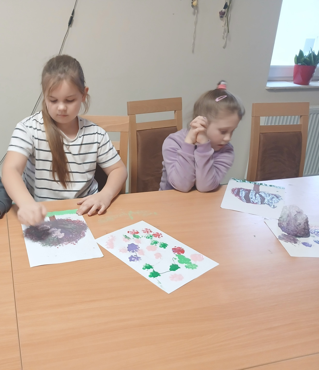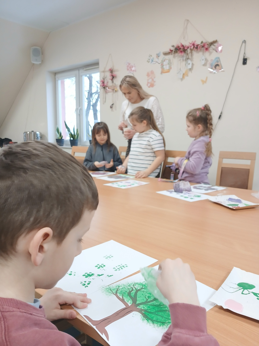Tworzyliśmy przepiękne, barwne drzewka, wykorzystując farby oraz folię bąbelkową. Było przy tym mnóstwo śmiechu, kreatywnych pomysłów i oczywiście… pękających bąbelków! Każde drzewko było inne i wyjątkowe – zupełnie jak jego autor.
