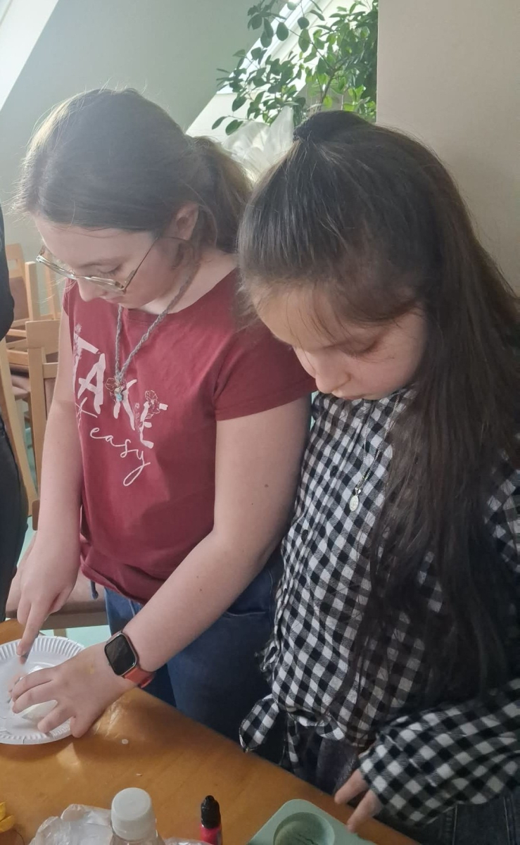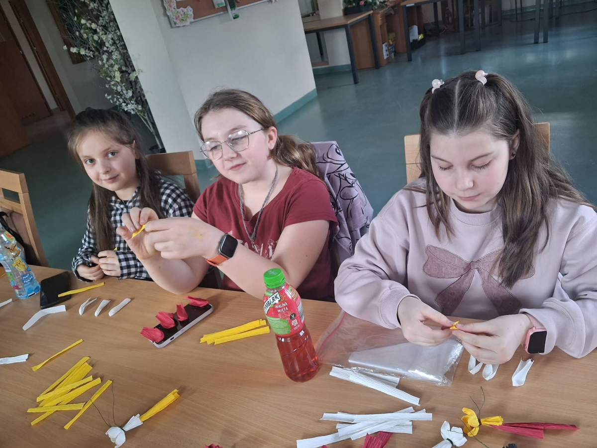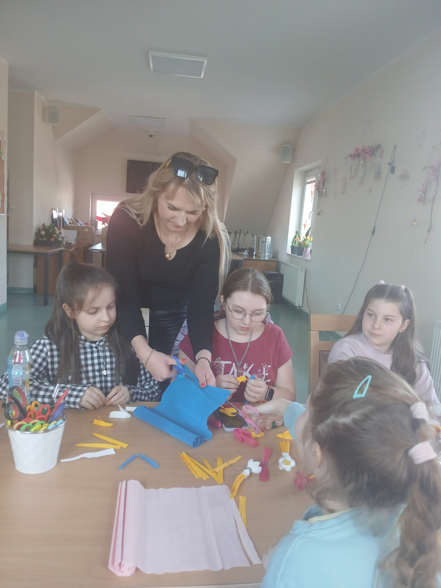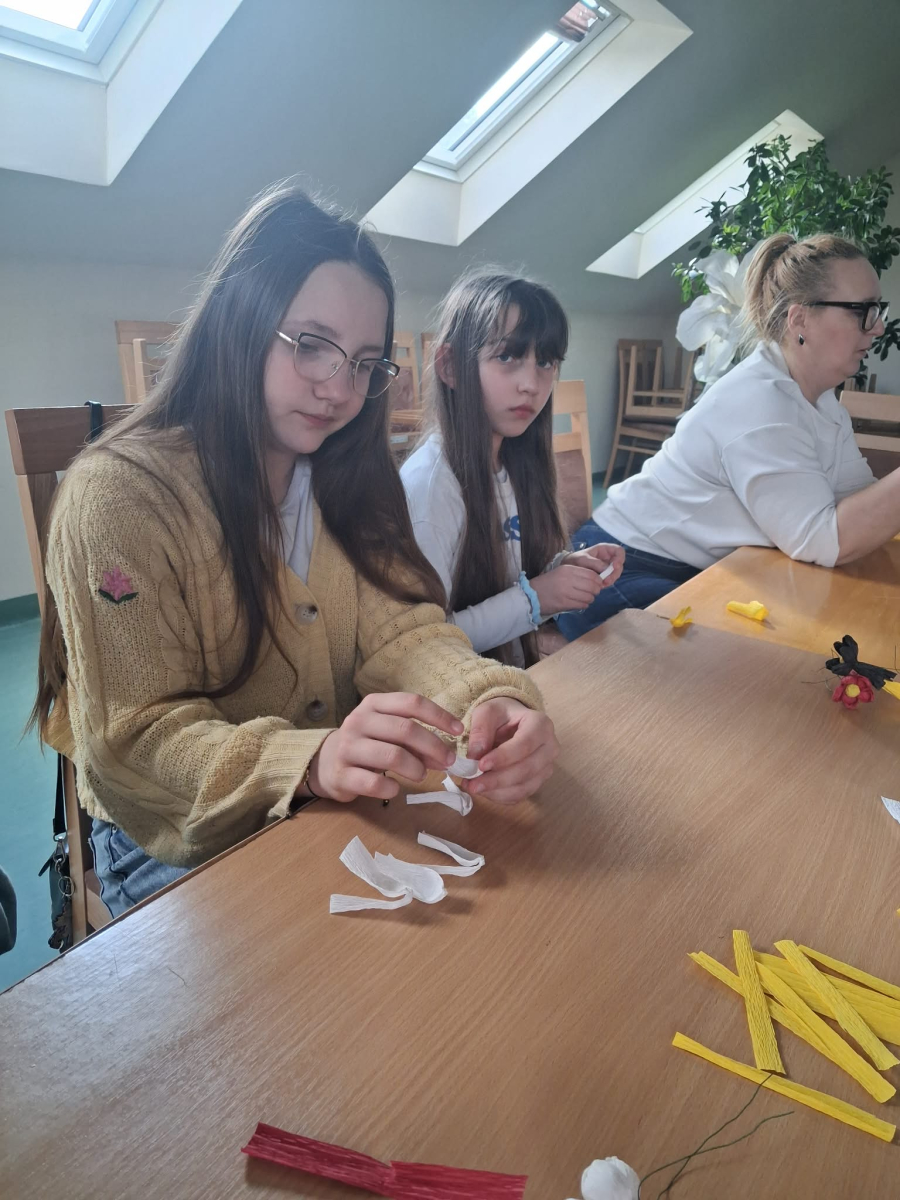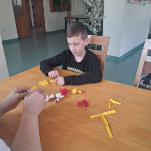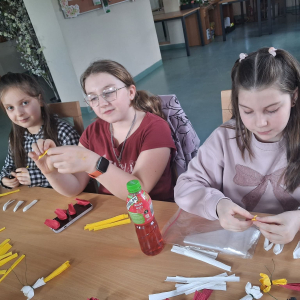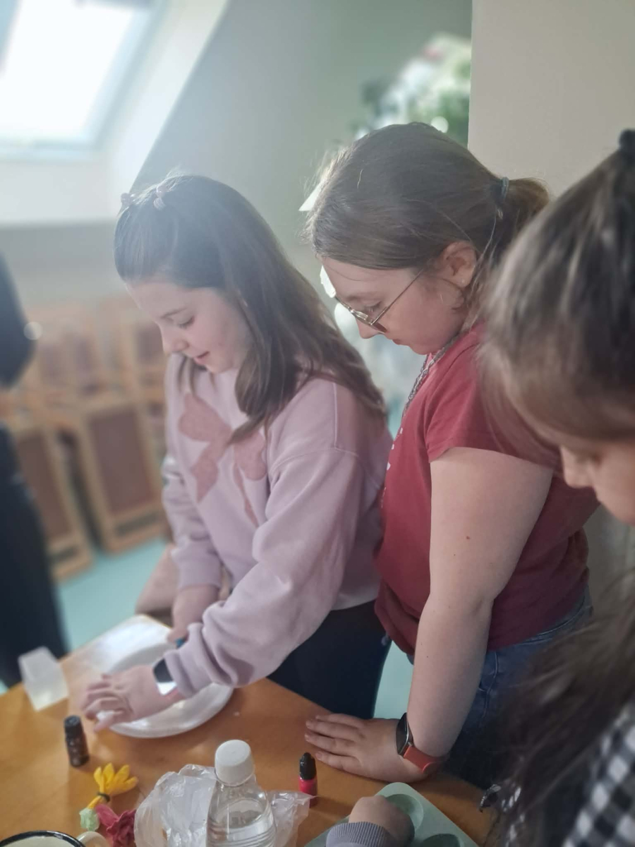 Natomiast w piątek było bardzo pachnąco i kolorowo – powstawały ręcznie robione mydełka oraz kwiatuszki do palm wielkanocnych.