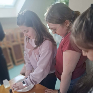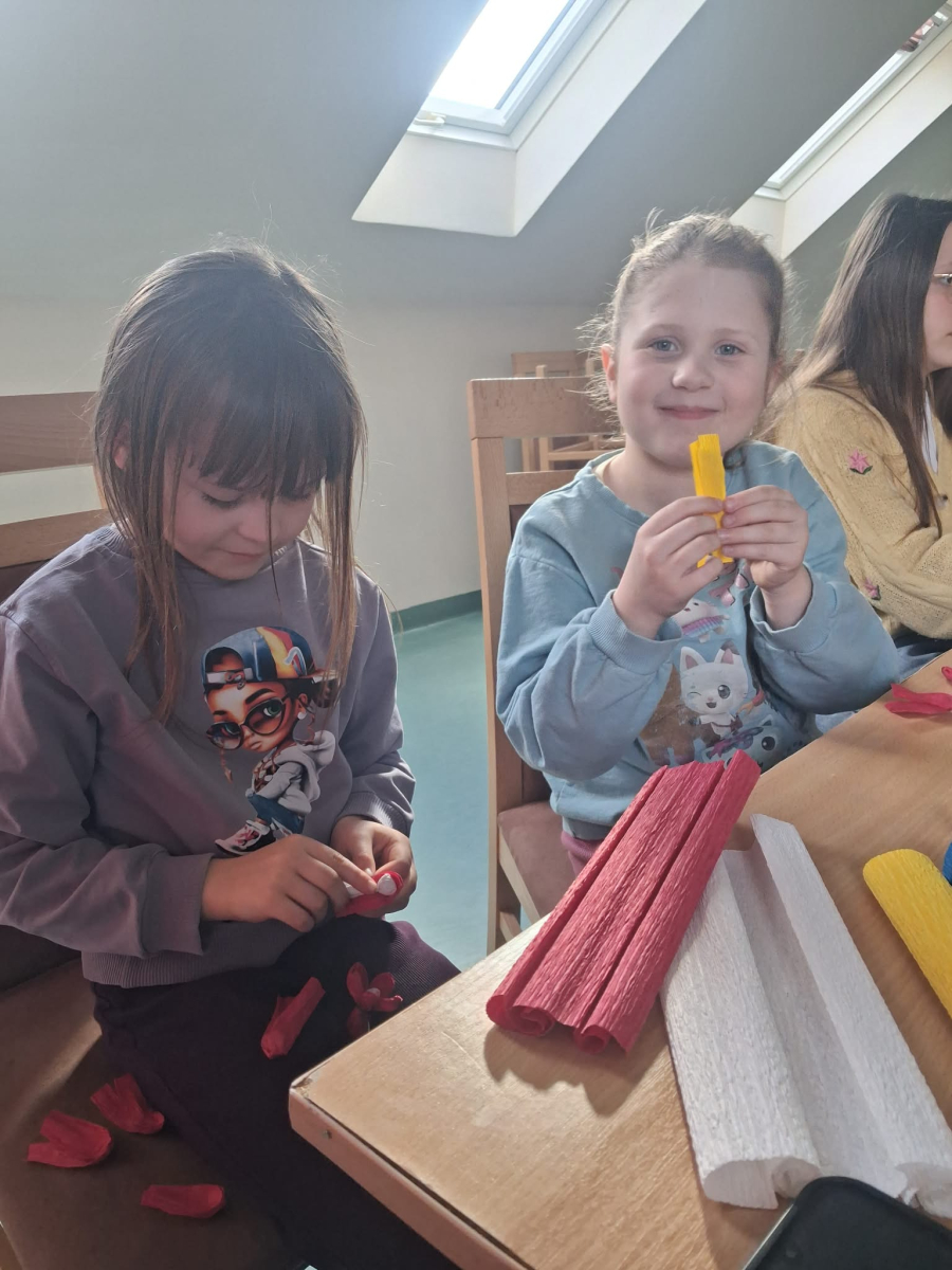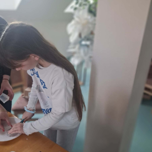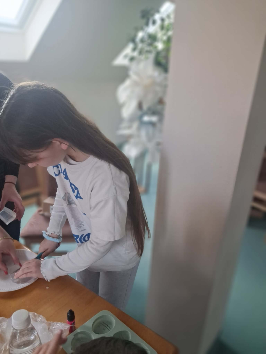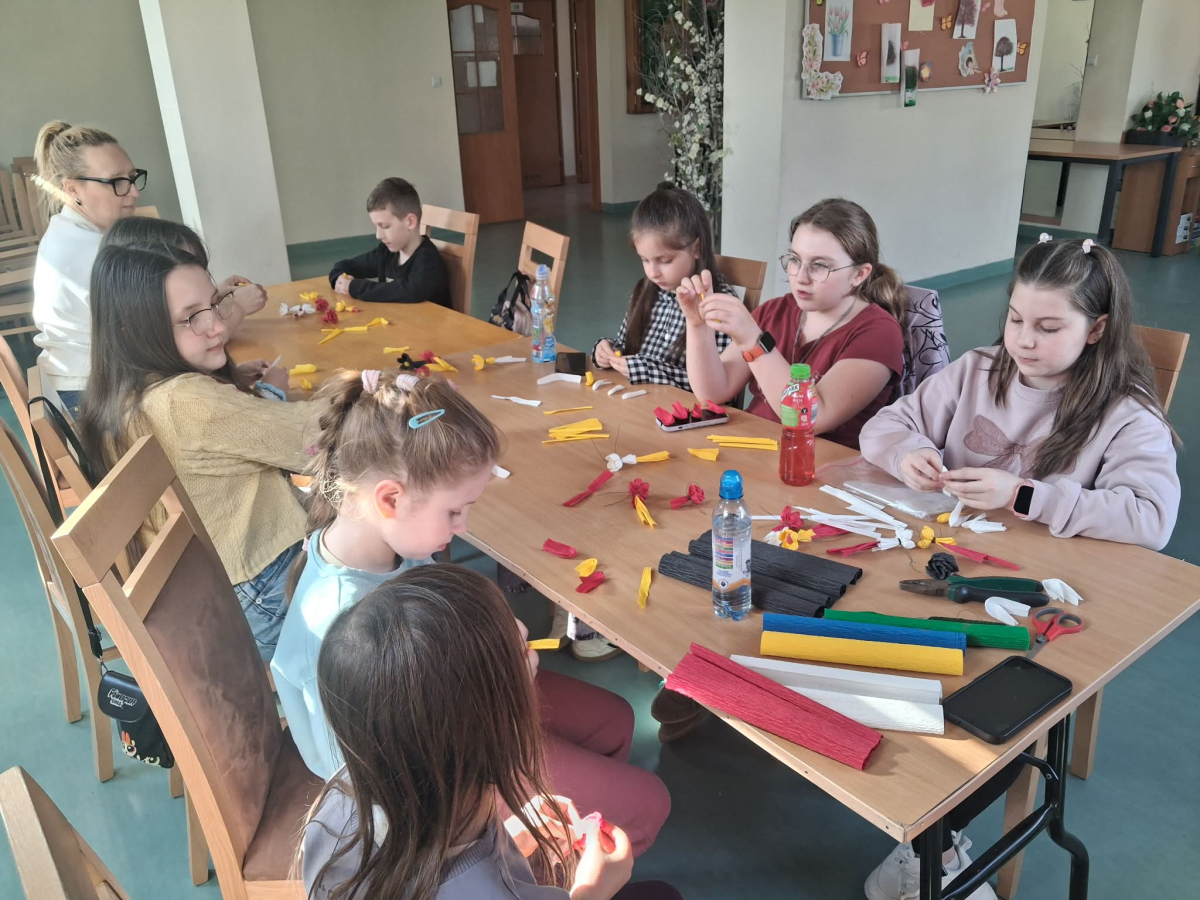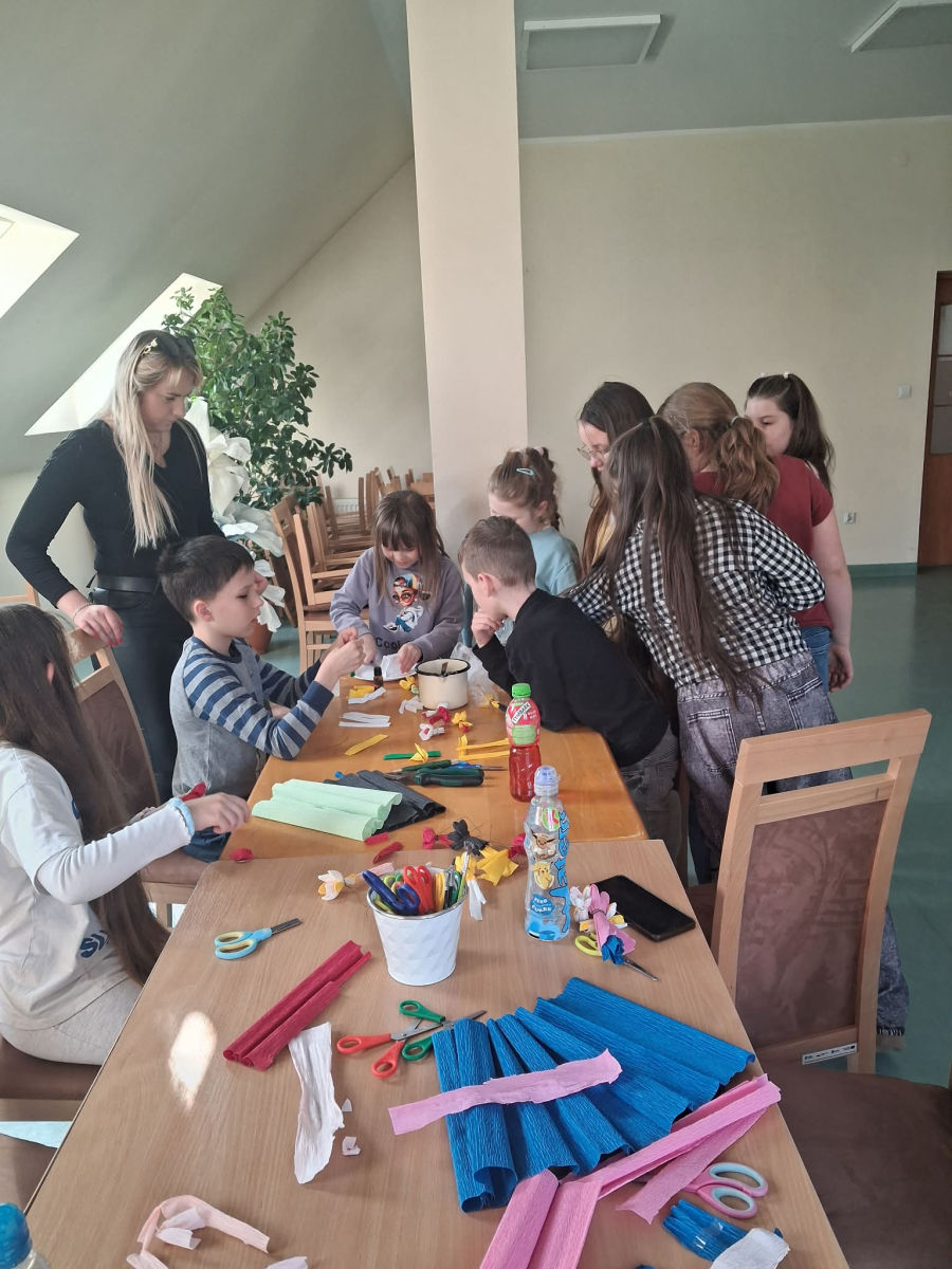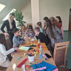 Natomiast w piątek było bardzo pachnąco i kolorowo – powstawały ręcznie robione mydełka oraz kwiatuszki do palm wielkanocnych.