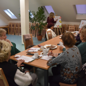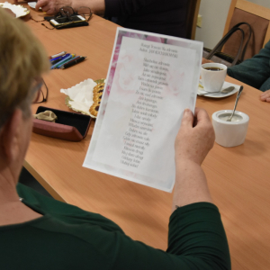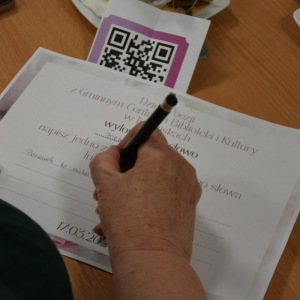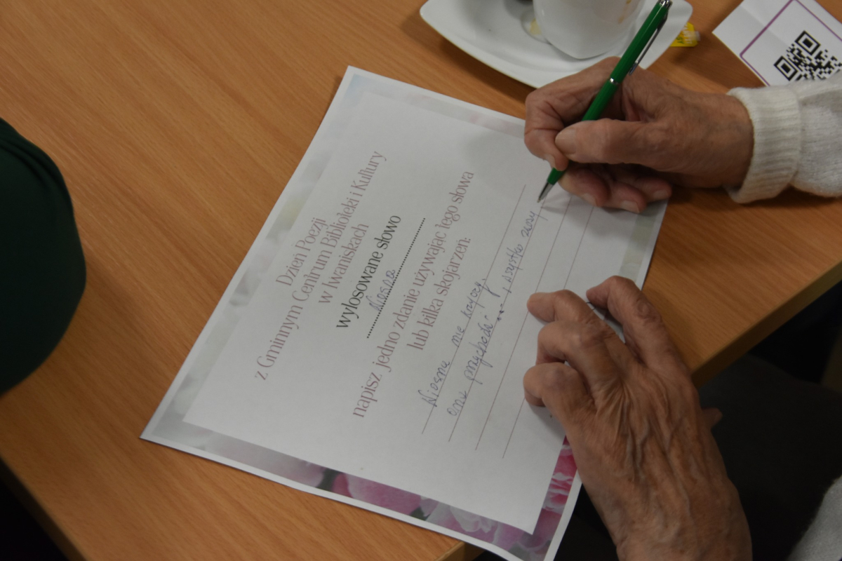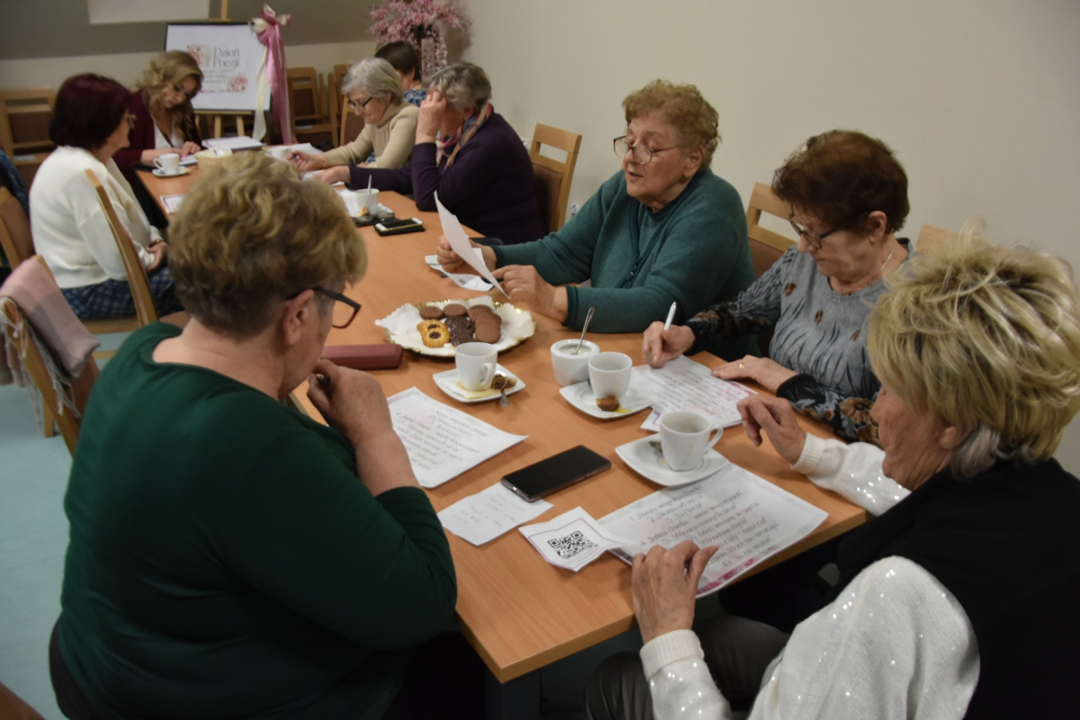 Wczorajsze kreatywne warsztaty dla seniorów były prawdziwą podróżą przez świat słowa, wspomnień i twórczej wyobraźni. Spotkanie rozpoczęliśmy od kilku refleksji na temat święta poezji oraz powrotu do utworów znanych z lat szkolnych. Uczestniczki udowodniły, że pamięć do poezji wciąż mają znakomitą – nie zabrakło pięknych, spontanicznych recytacji, które wzruszyły i zachwyciły wszystkich obecnych.
