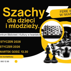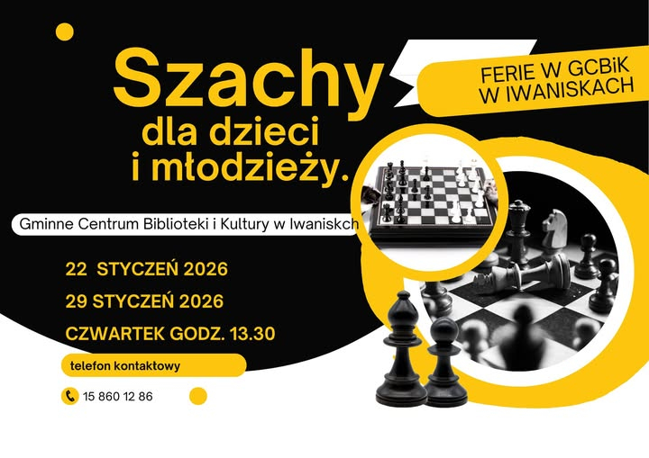 Zaczynają się wyczekiwane ferie!!! …a w naszej Instytucji zajęcia szachowe dla dzieci i młodzieży. Jeśli jeszcze nie umiecie grać w szachy to jest szansa żeby to zmienić! W każdy czwartek podczas ferii będziemy się uczyć grać od podstaw a ci którzy już umieją będą szlifować swoją grę. Zapraszamy Wszystkich bardzo serdecznie!