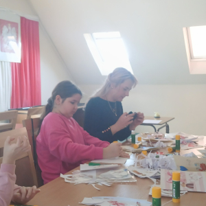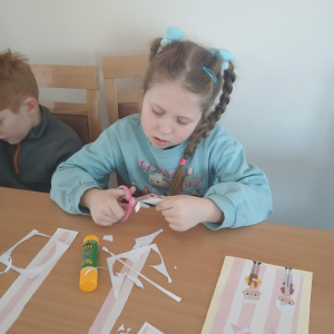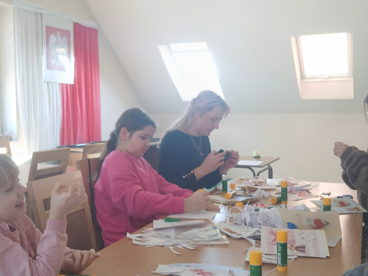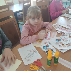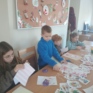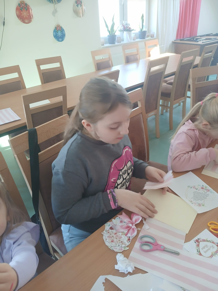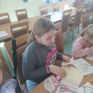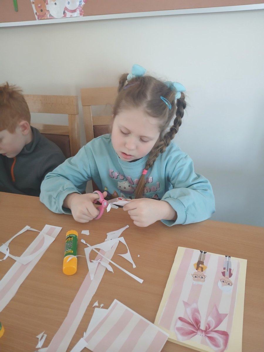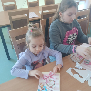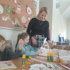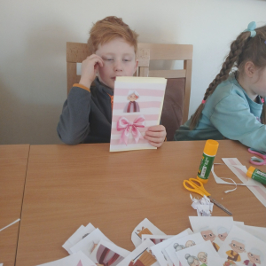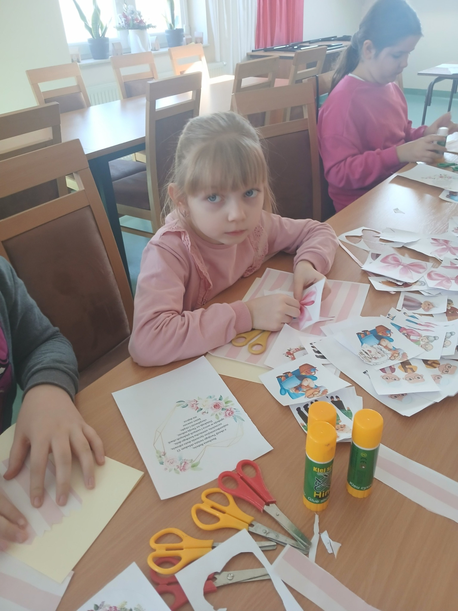 Na dzisiejszych zajęciach „Ferie pełne zabawy w GCBiK w Iwaniskach” było bardzo kolorowo i radośnie! Dzieci z ogromnym zaangażowaniem wykonywały piękne laurki z okazji nadchodzącego Dnia Babci i Dziadka, wkładając w nie dużo serca i uśmiechu.