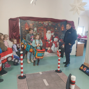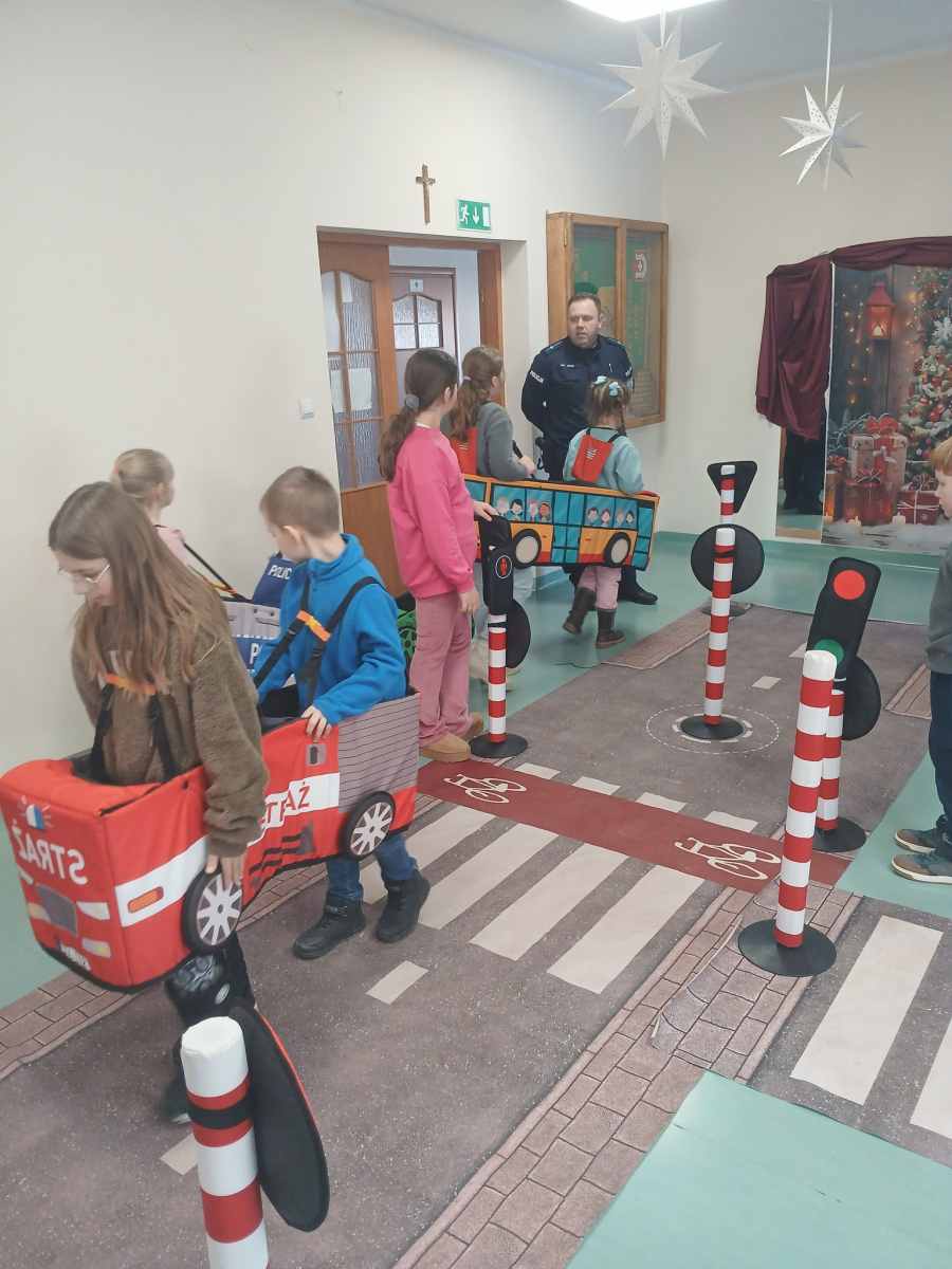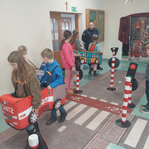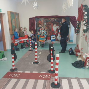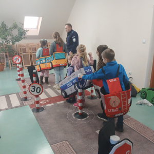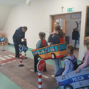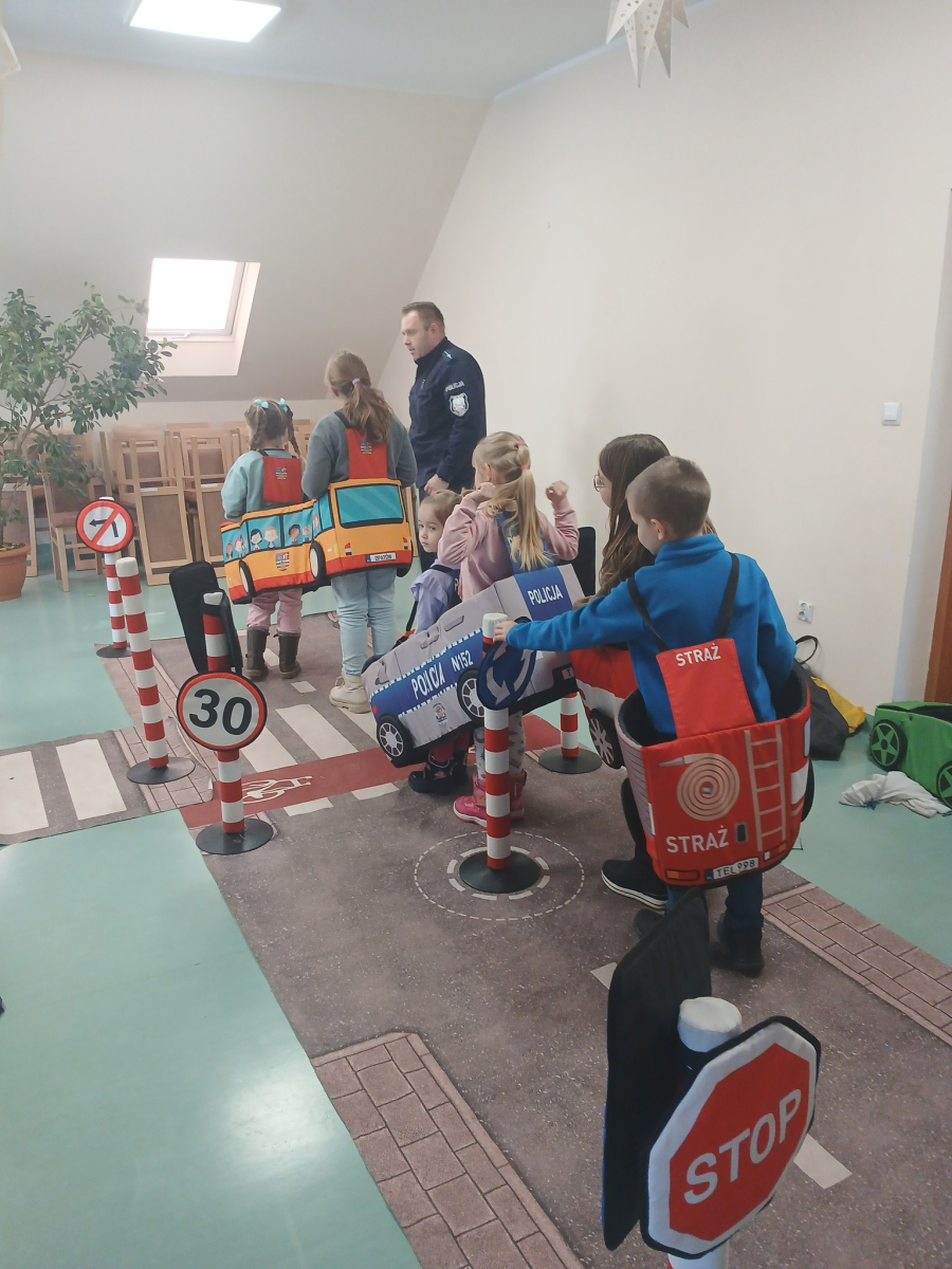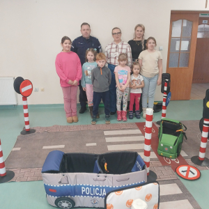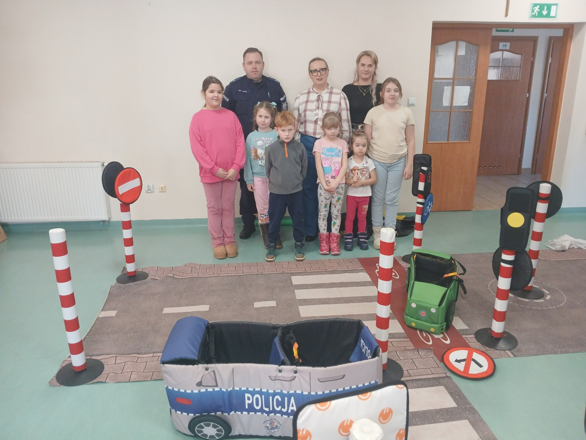 W drugiej części zajęć odwiedził nas wyjątkowy gość – pan policjant, który w ciekawy i przystępny sposób przypomniał dzieciom zasady bezpiecznego poruszania się pieszo. Nie zabrakło pytań, odpowiedzi i wspólnej zabawy.