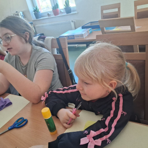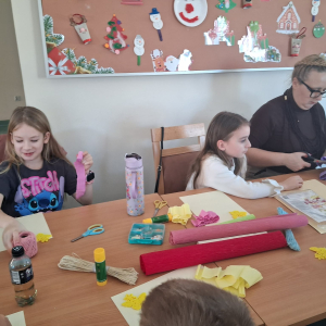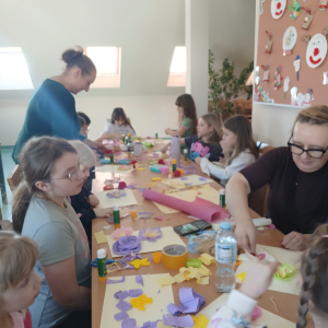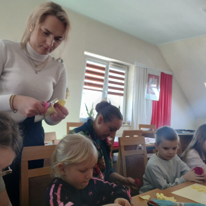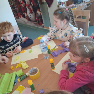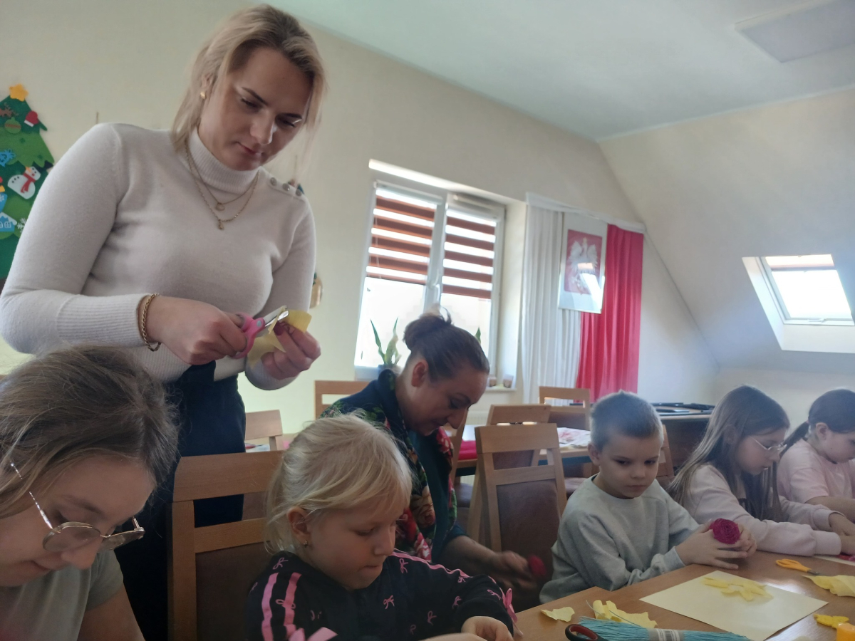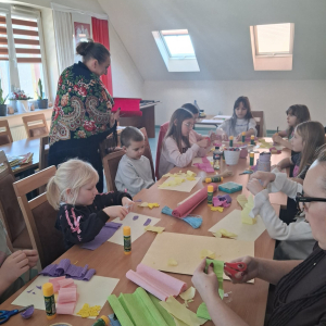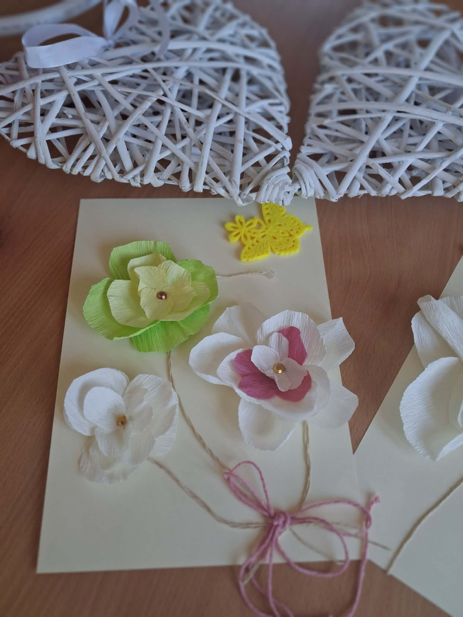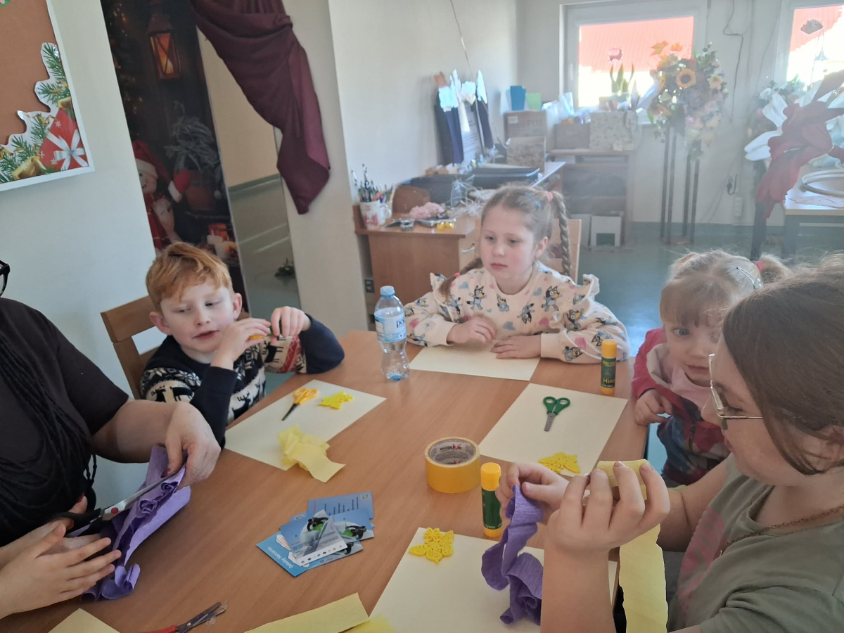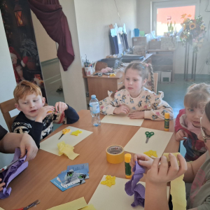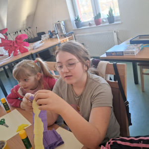 Podczas zajęć pod hasłem „Ferie pełne zabawy z GCBiK w Iwaniskach”, wspólnie z panią Ewą - przewodniczącą z Koła Gospodyń Wiejskich w Przepiórowie, daliśmy się ponieść kreatywnej zabawie. Powstały kolorowe, radosne kwiaty, które wprowadziły prawdziwie wiosenny nastrój