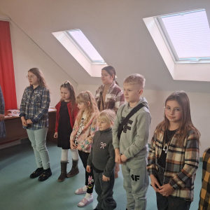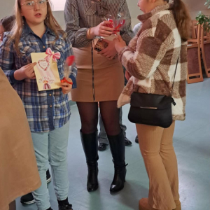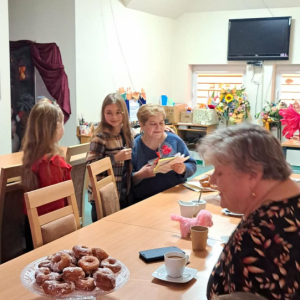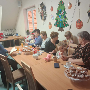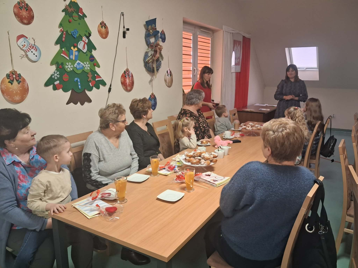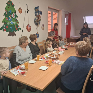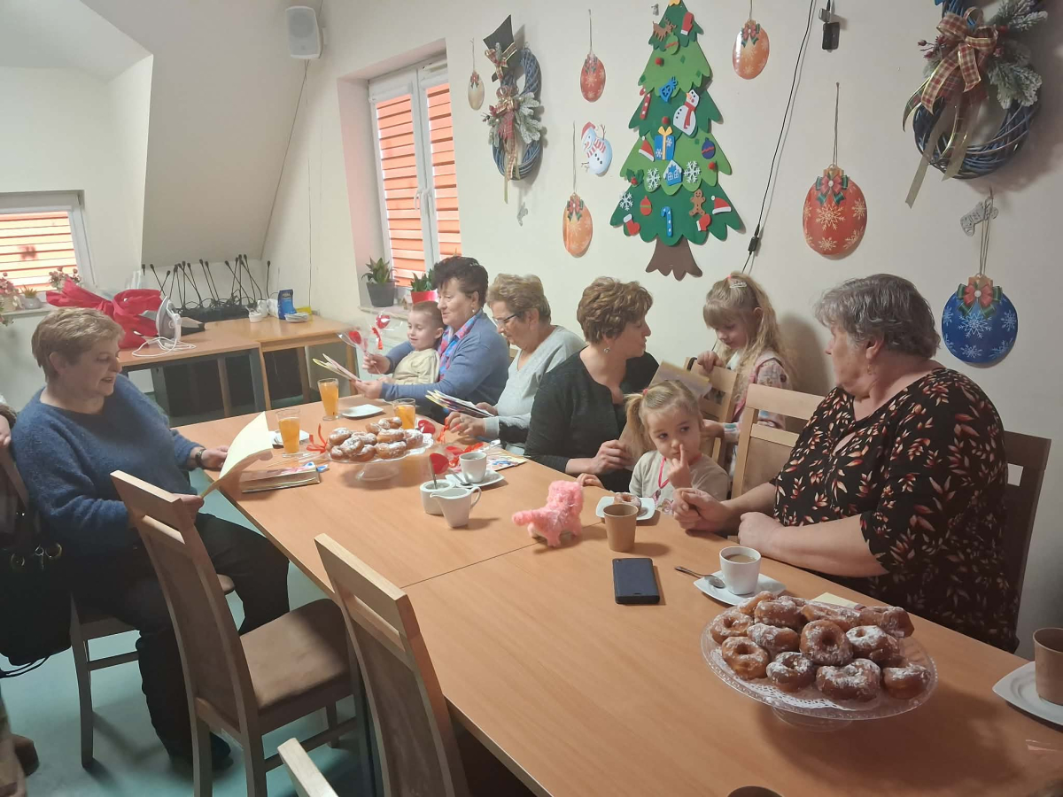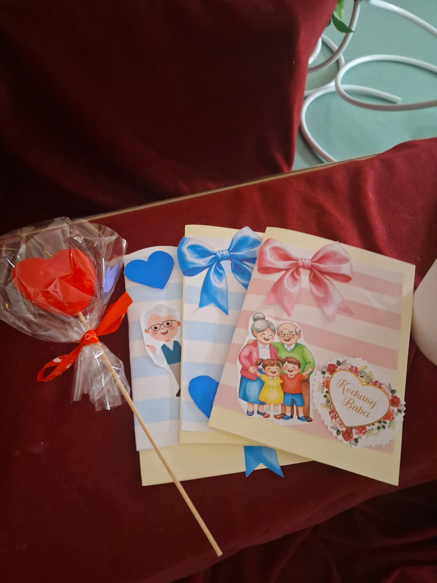 Spotkanie rozpoczęło się od wzruszającego występu artystycznego – dzieci z wielkim zaangażowaniem zaśpiewały wcześniej przygotowaną piosenkę dedykowaną babciom i dziadkom oraz wręczyli przygotowane laurki i serduszka zawieszki. Występ dostarczył wielu pozytywnych emocji i wywołał uśmiechy oraz wzruszenie wśród zgromadzonych gości. Następnie wszyscy zostali zaproszeni na słodki poczęstunek, który sprzyjał rozmowom i wspólnemu spędzaniu czasu w miłej, rodzinnej atmosferze.