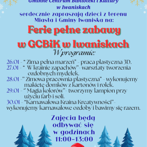 Plakat - Ferie pełne zabawy w GCBiK w Iwaniskach - 1 tydzień