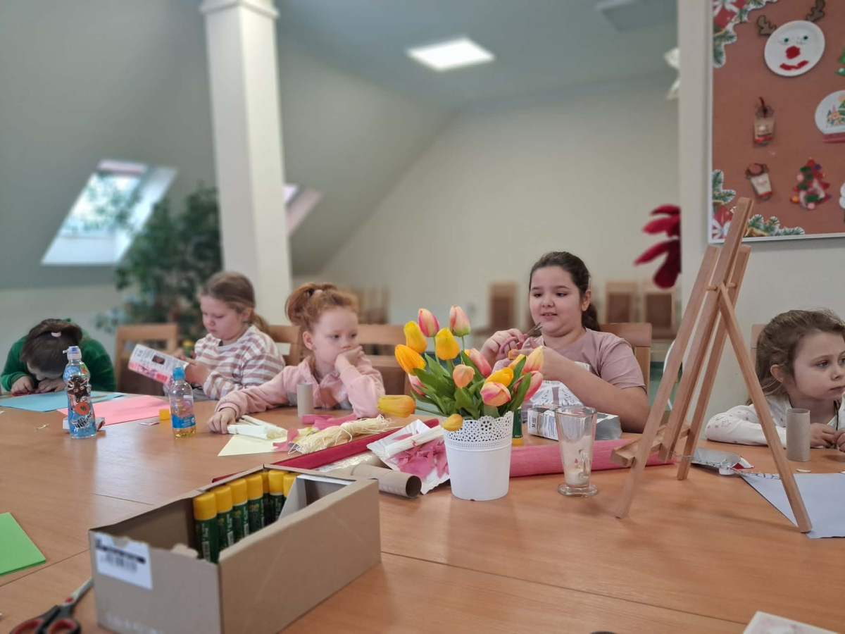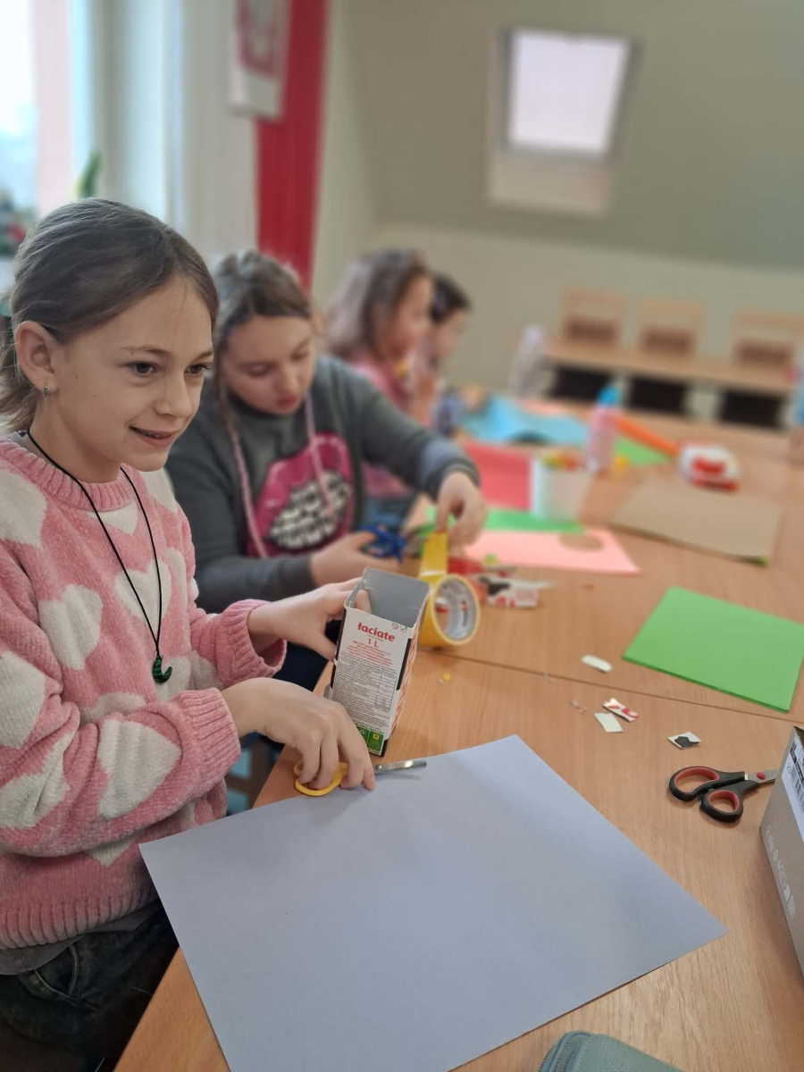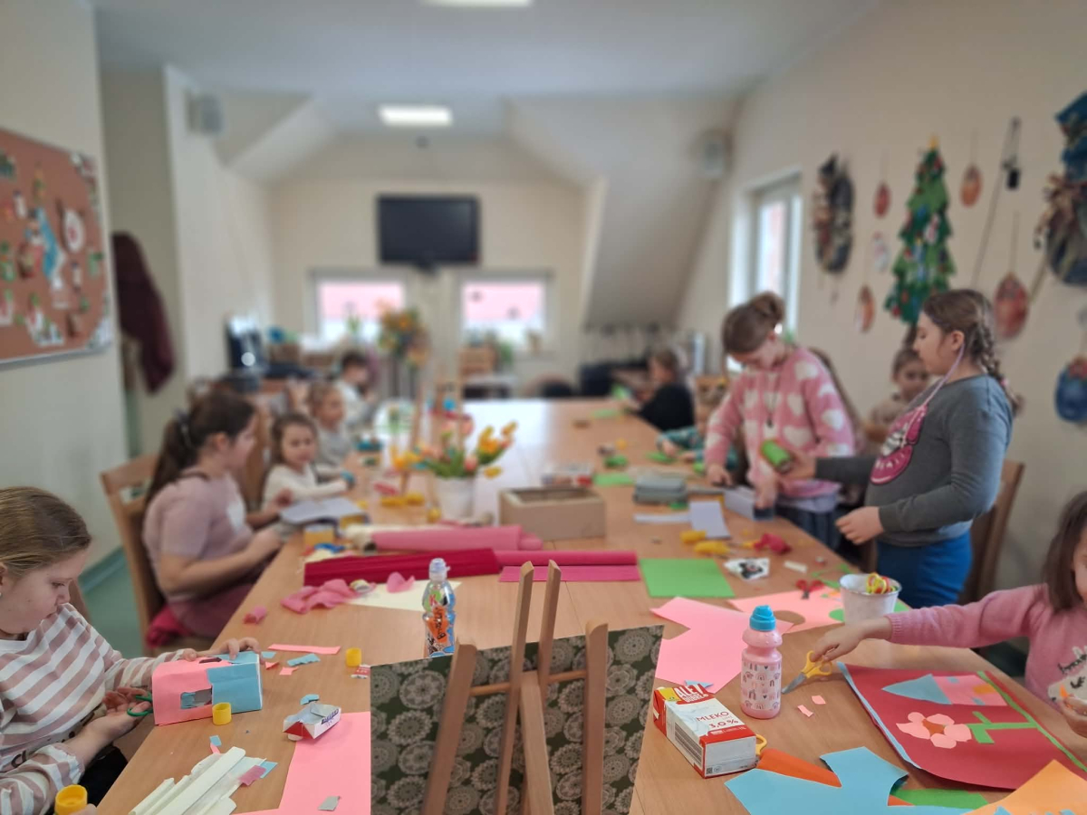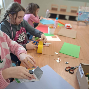 Podczas zajęć z cyklu „Ferie pełne zabawy w GCBiK w Iwaniskach” daliśmy upust naszej wyobraźni! Z kartonów i rolek po papierze powstała kolorowa makieta domków – każdy inny, każdy wyjątkowy. Było dużo śmiechu, kreatywnej pracy i radości z tworzenia. Mali architekci spisali się na medal, a efekty ich pracy naprawdę robią wrażenie!