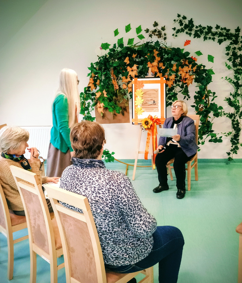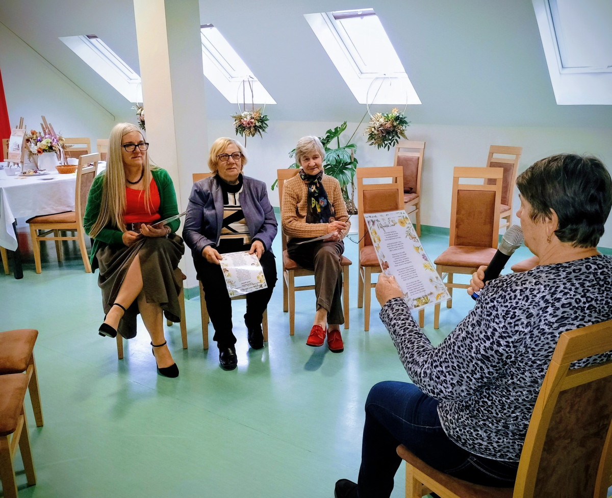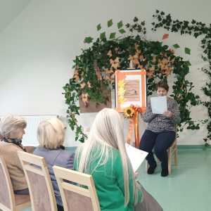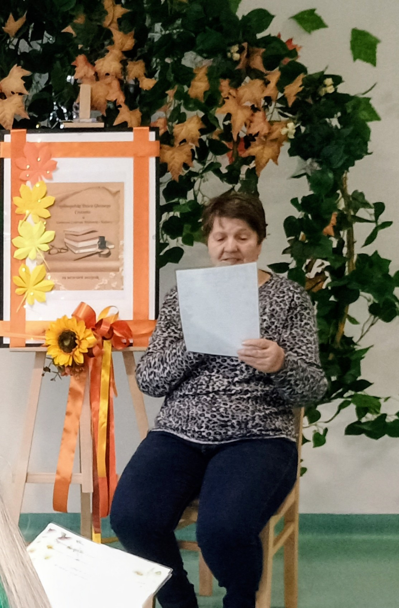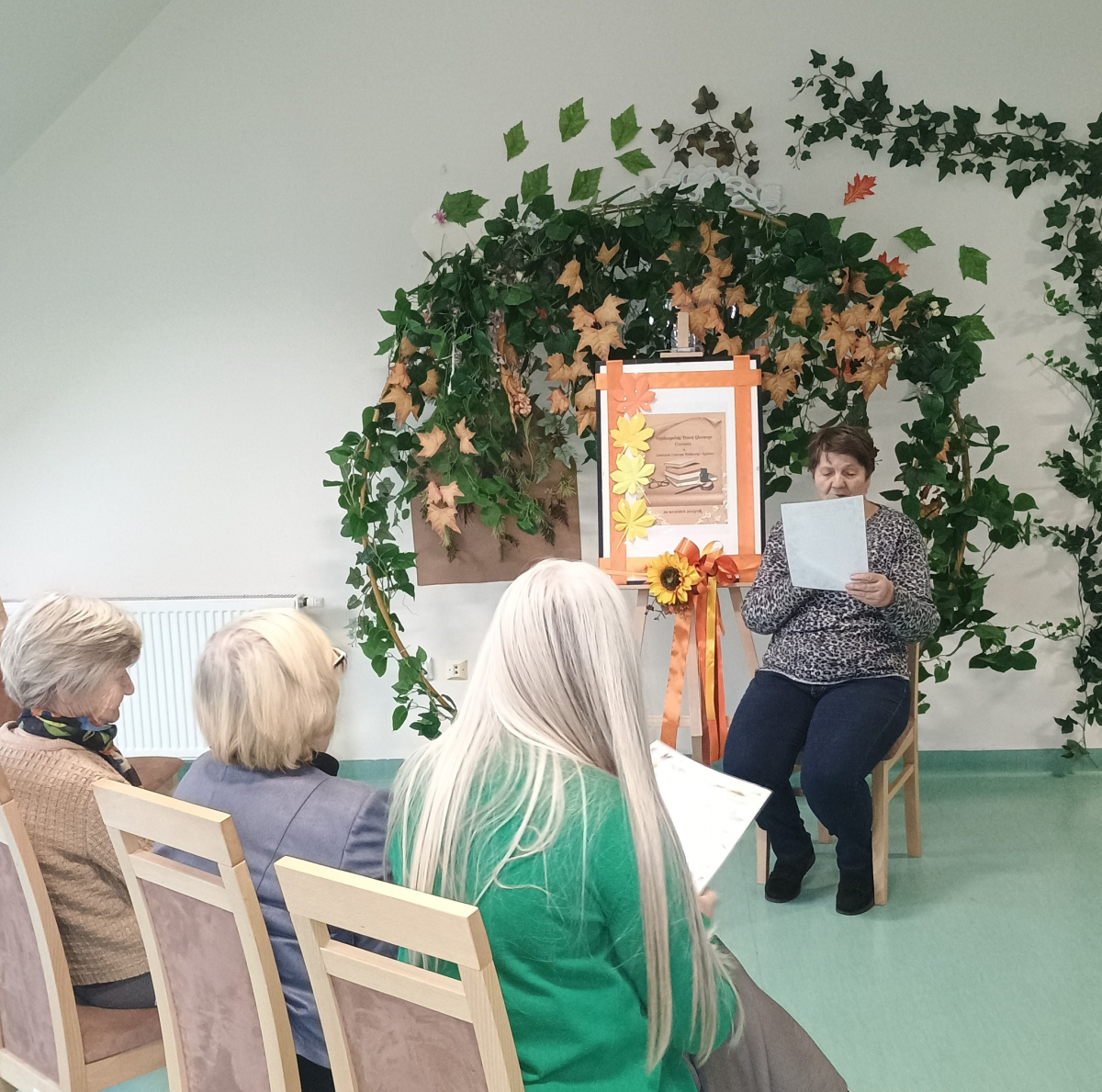 Cd. naszej akcji Ogólnopolskiego Dnia Głośnego Czytania. Tym razem przygotowaliśmy naszym Paniom z Klubu Seniora do czytania: aforyzmy, wiersze poważne i zabawne oraz opowiadania. Trochę powagi i trochę humoru, a do tego muzyka na to deszczowe popołudnie. Nie zabrakło też słodkości, ciepłej owocowej herbatki i pysznej konfitury od naszej Pani Stasi..mniammmm! Każda z Pań pięknie zaprezentowała wybrany przez siebie tekst. Na dodatek z mikrofonem! Brawo dla Was! Dziękujemy za Wasz występ i odwagę!