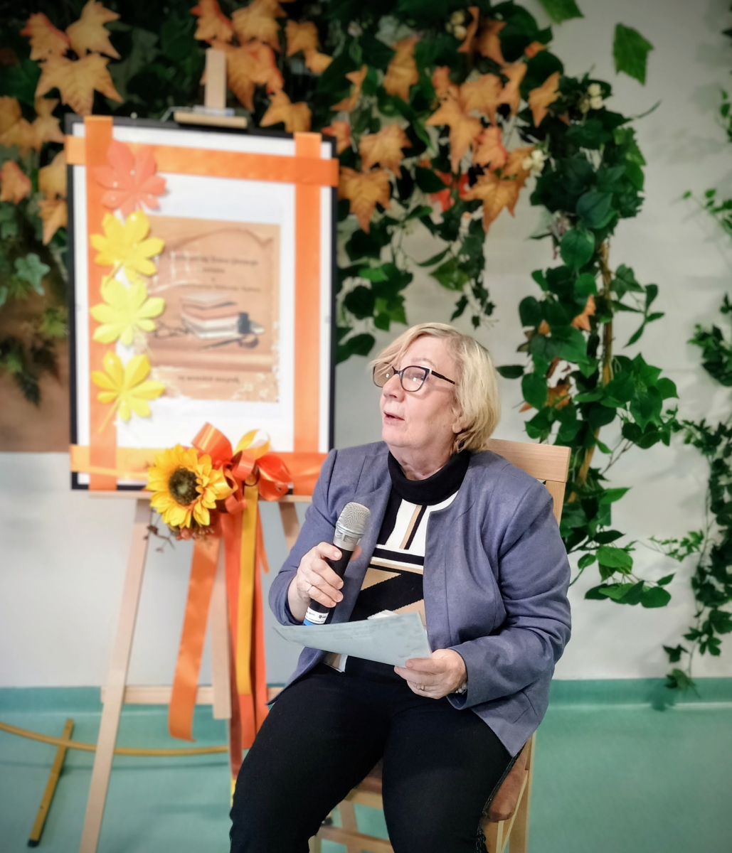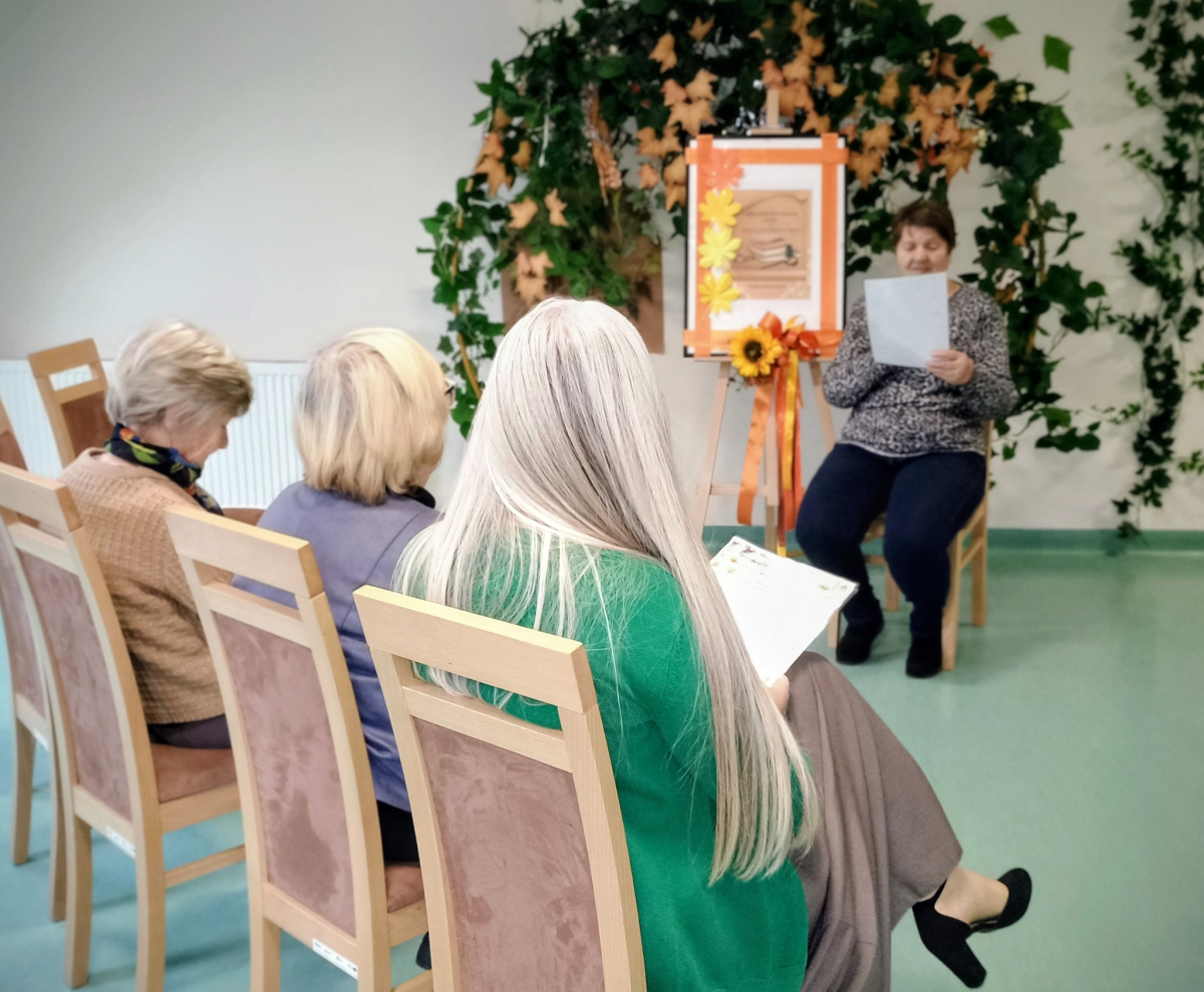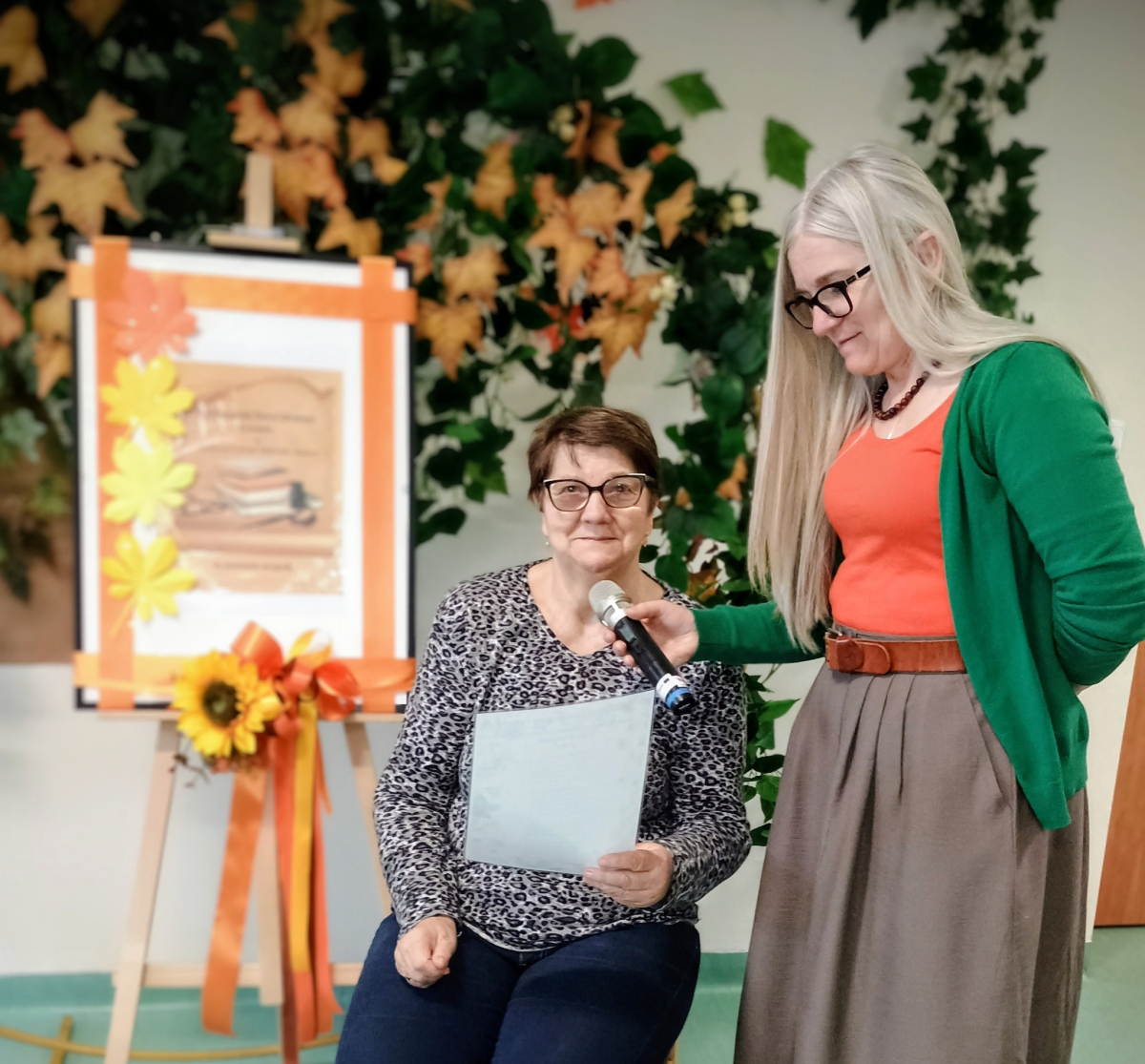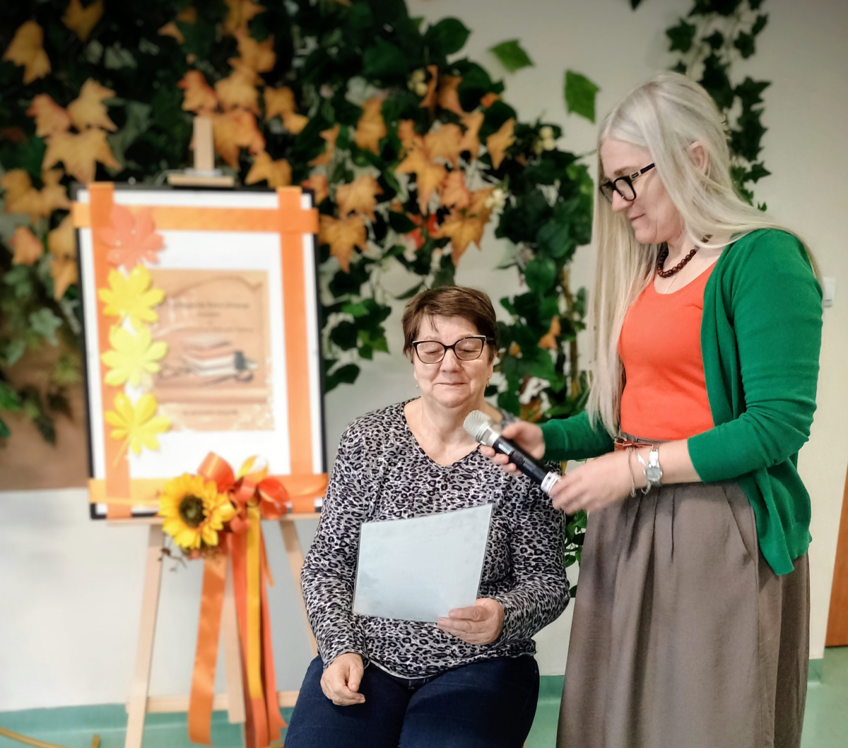 Cd. naszej akcji Ogólnopolskiego Dnia Głośnego Czytania. Tym razem przygotowaliśmy naszym Paniom z Klubu Seniora do czytania: aforyzmy, wiersze poważne i zabawne oraz opowiadania. Trochę powagi i trochę humoru, a do tego muzyka na to deszczowe popołudnie. Nie zabrakło też słodkości, ciepłej owocowej herbatki i pysznej konfitury od naszej Pani Stasi..mniammmm! Każda z Pań pięknie zaprezentowała wybrany przez siebie tekst. Na dodatek z mikrofonem! Brawo dla Was! Dziękujemy za Wasz występ i odwagę!