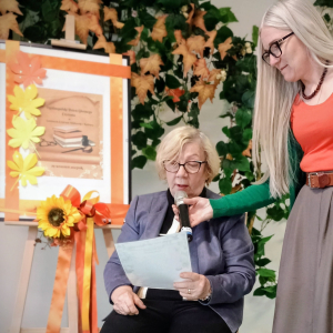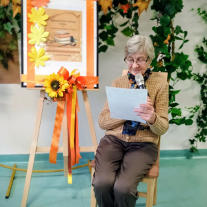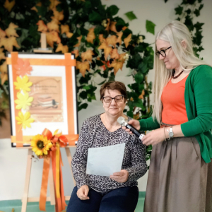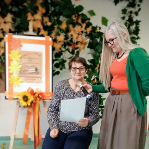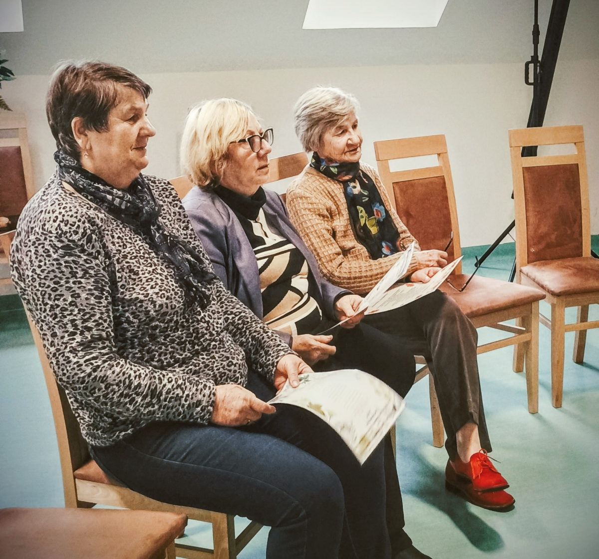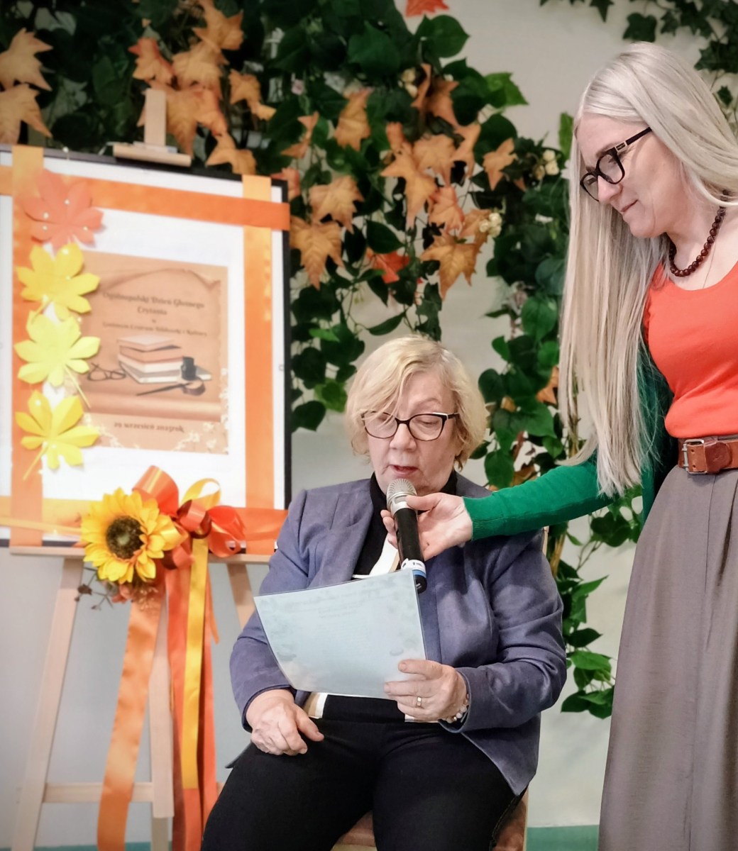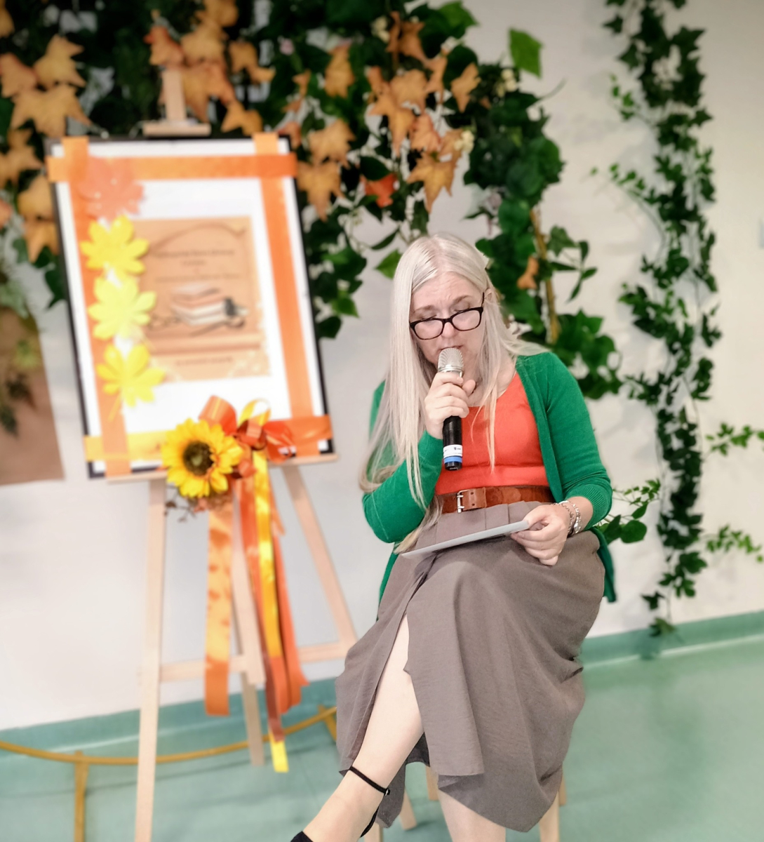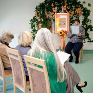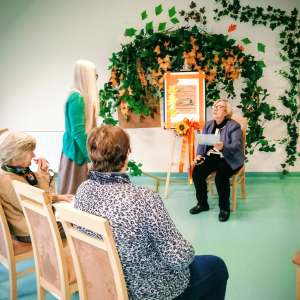 Cd. naszej akcji Ogólnopolskiego Dnia Głośnego Czytania. Tym razem przygotowaliśmy naszym Paniom z Klubu Seniora do czytania: aforyzmy, wiersze poważne i zabawne oraz opowiadania. Trochę powagi i trochę humoru, a do tego muzyka na to deszczowe popołudnie. Nie zabrakło też słodkości, ciepłej owocowej herbatki i pysznej konfitury od naszej Pani Stasi..mniammmm! Każda z Pań pięknie zaprezentowała wybrany przez siebie tekst. Na dodatek z mikrofonem! Brawo dla Was! Dziękujemy za Wasz występ i odwagę!