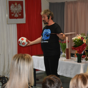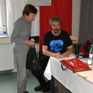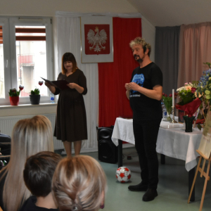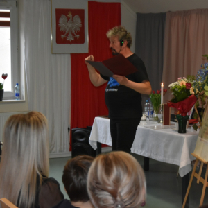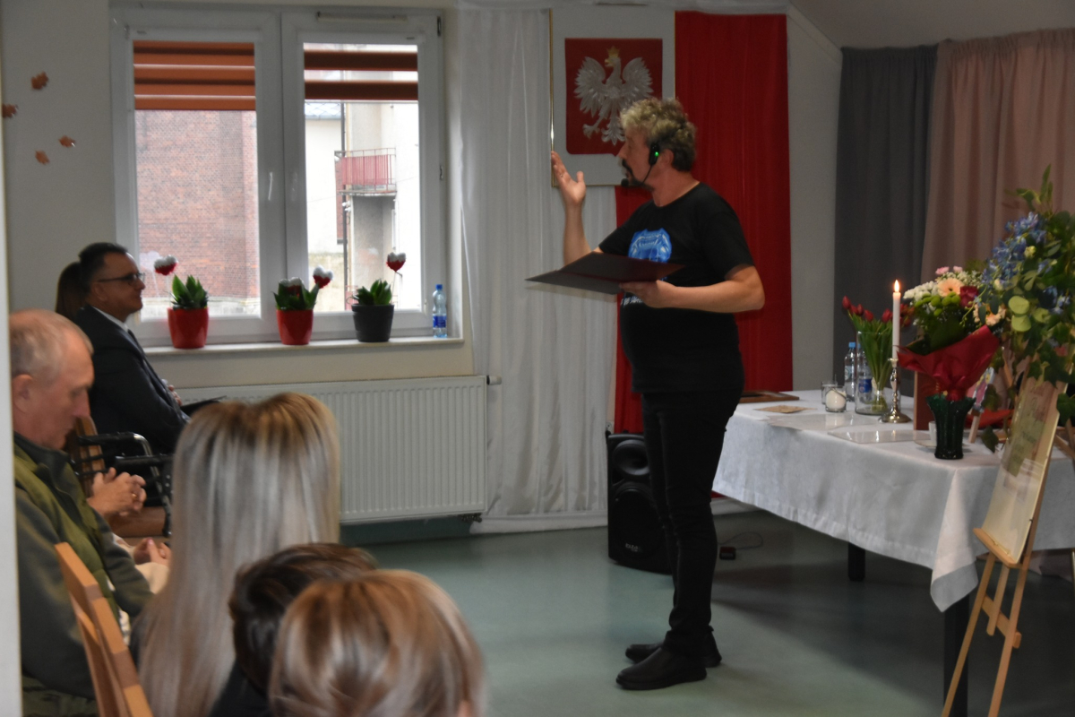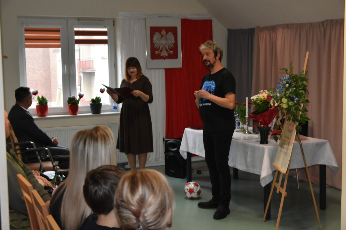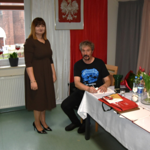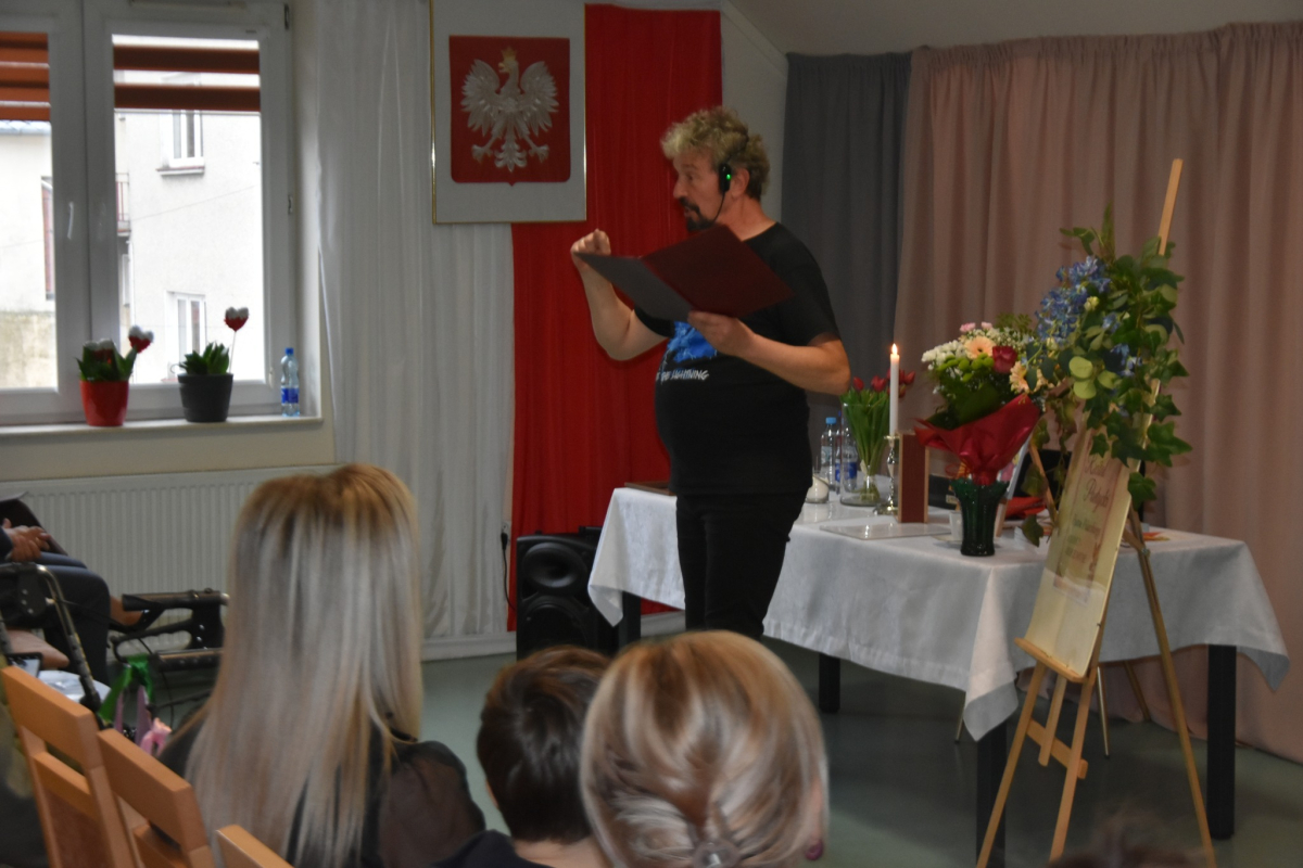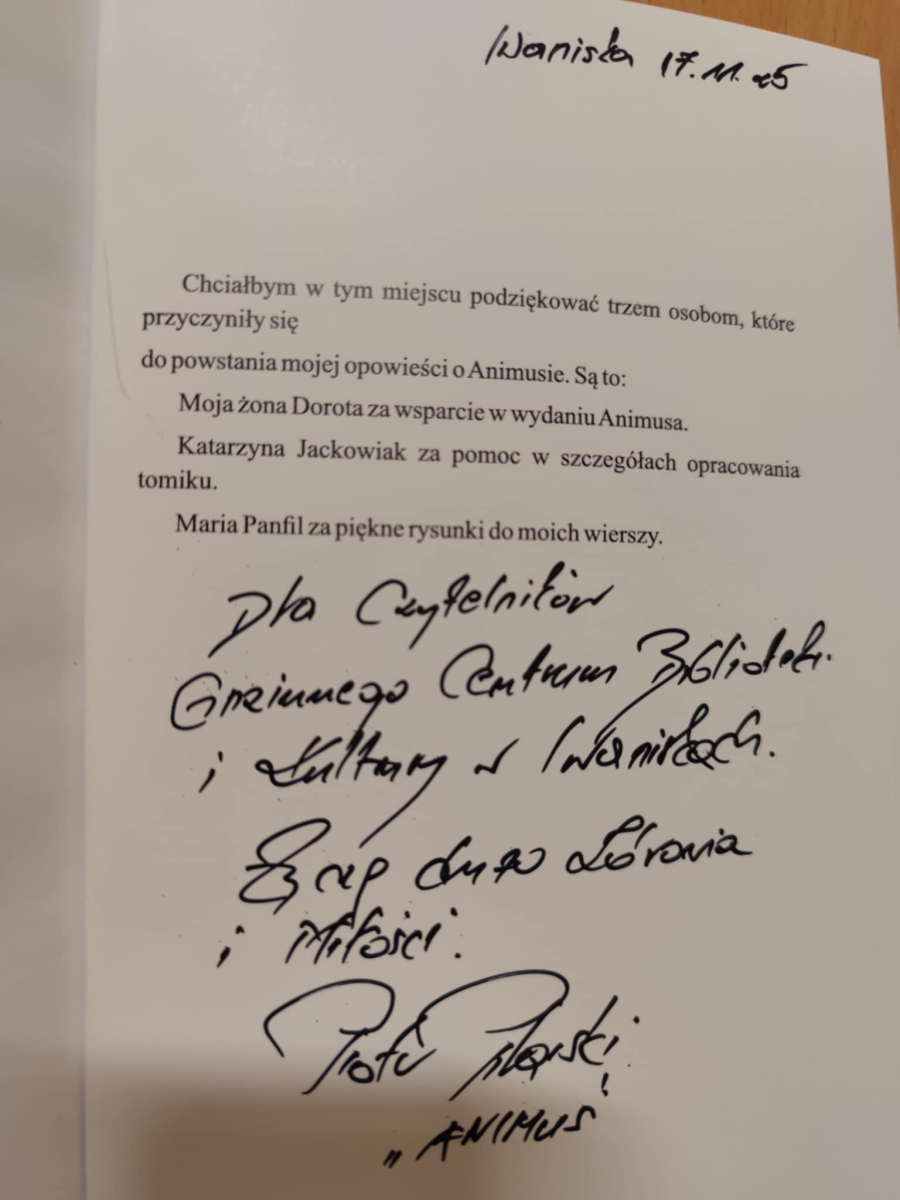 Dzisiejsze spotkanie w Gminnym Centrum Biblioteki i Kultury w Iwaniskach było prawdziwą ucztą dla ducha. Wydarzenie rozpoczęła Dyrektor – Pani Dominika Kaptur, która serdecznie powitała wszystkich gości, uczestników oraz naszego wyjątkowego artystę – Piotra Pilarskiego, aktora, poetę i mistrza słowa mówionego.