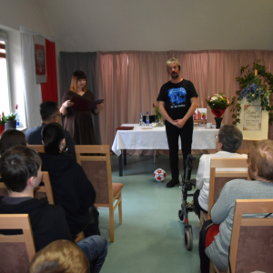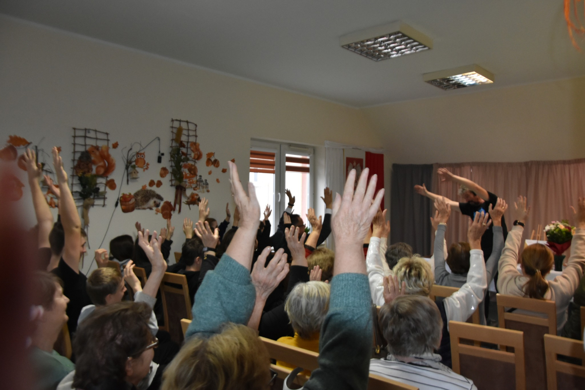 Szczególnie cieszy nas obecność tak różnorodnej publiczności – w spotkaniu udział wzięli mieszkańcy DPS w Przepiórowie, seniorzy uczestniczący w zajęciach organizowanych w GCBiK, a także młodzież z klasy 7B i 8B PSP im. Marszałka Józefa Piłsudskiego