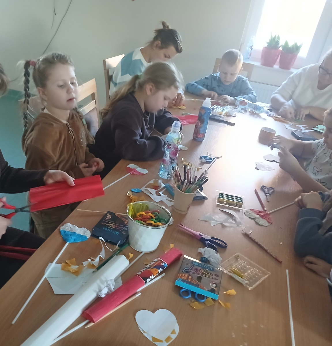 Popołudniowe Warsztaty Kreatywne upłynęły nam pod znakiem świetnej zabawy i twórczej energii. Dzieci z zapałem tworzyły biało-czerwone serca wyklejane bibułą, które wyszły przepięknie. Uczestnicy również na zajęciach przygotowały jesienne kubki 3D ich efekty sami możecie ocenić na poniższej fotorelacji. Nie zabrakło też wykreślanek, gier planszowych oraz układania klocków.
