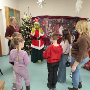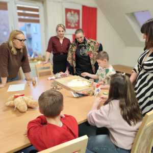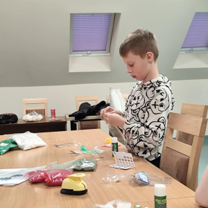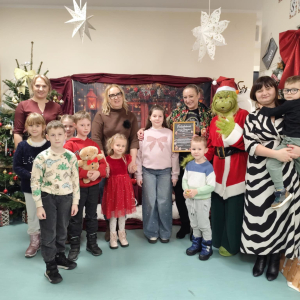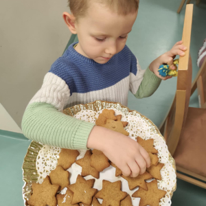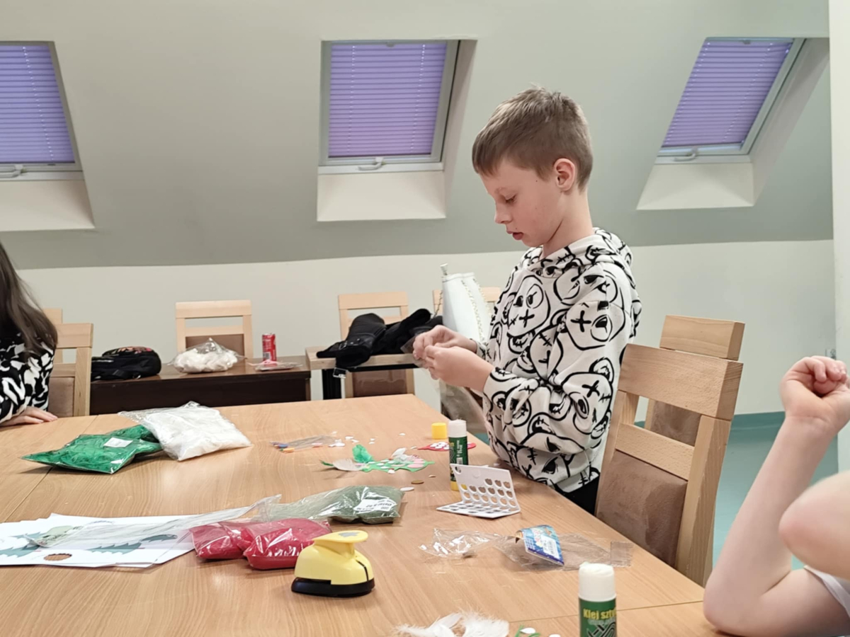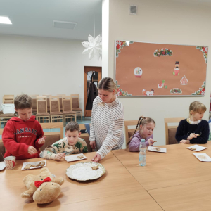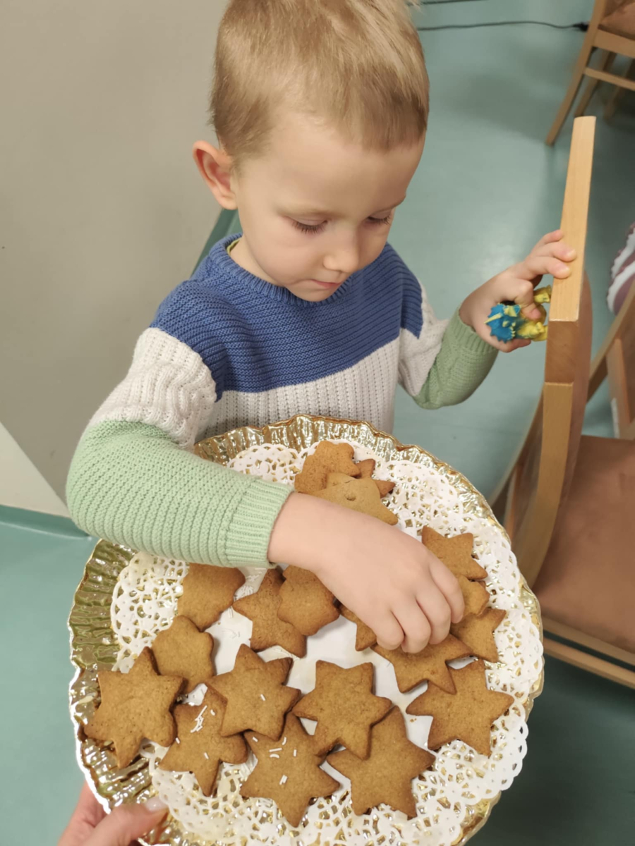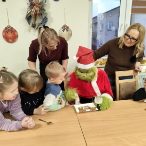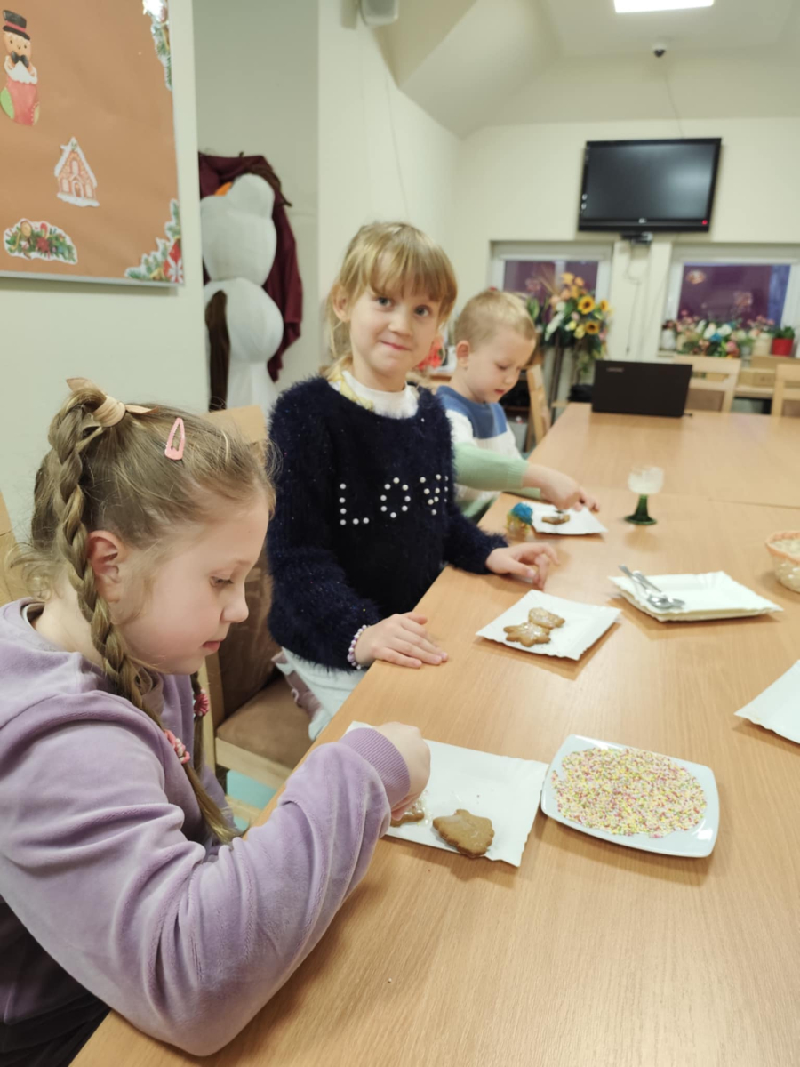w Przepiórowie mieliśmy okazję piec pierniczki, które od samego początku wzbudziły ogromne zainteresowanie uczestników. Każdy z wielkim zaangażowaniem wałkował ciasto, wykrawał świąteczne kształty. Zapach świeżo upieczonych pierniczków był tak kuszący, że odwiedził nas nawet specjalny gość – sam GRINCH!!! Choć początkowo nie był on przekonany do świąt, dzieci szybko przekonały go, że święta są wspaniałe, pełne radości i wspólnego ciepła. Grinch uległ zapewnieniom dzieci i udekorował z nimi pierniczki.
