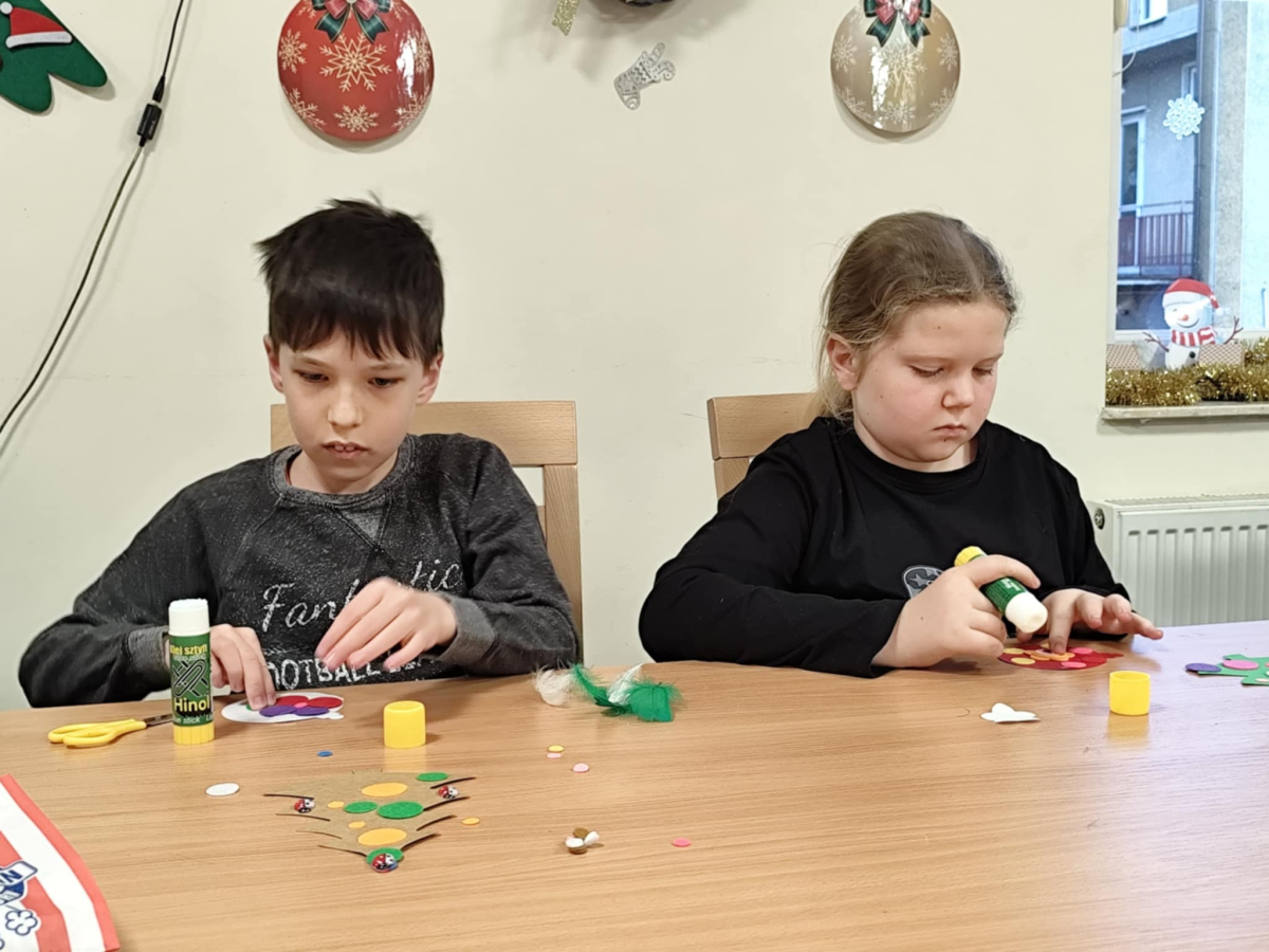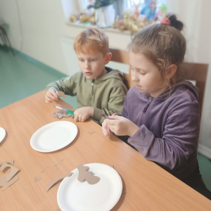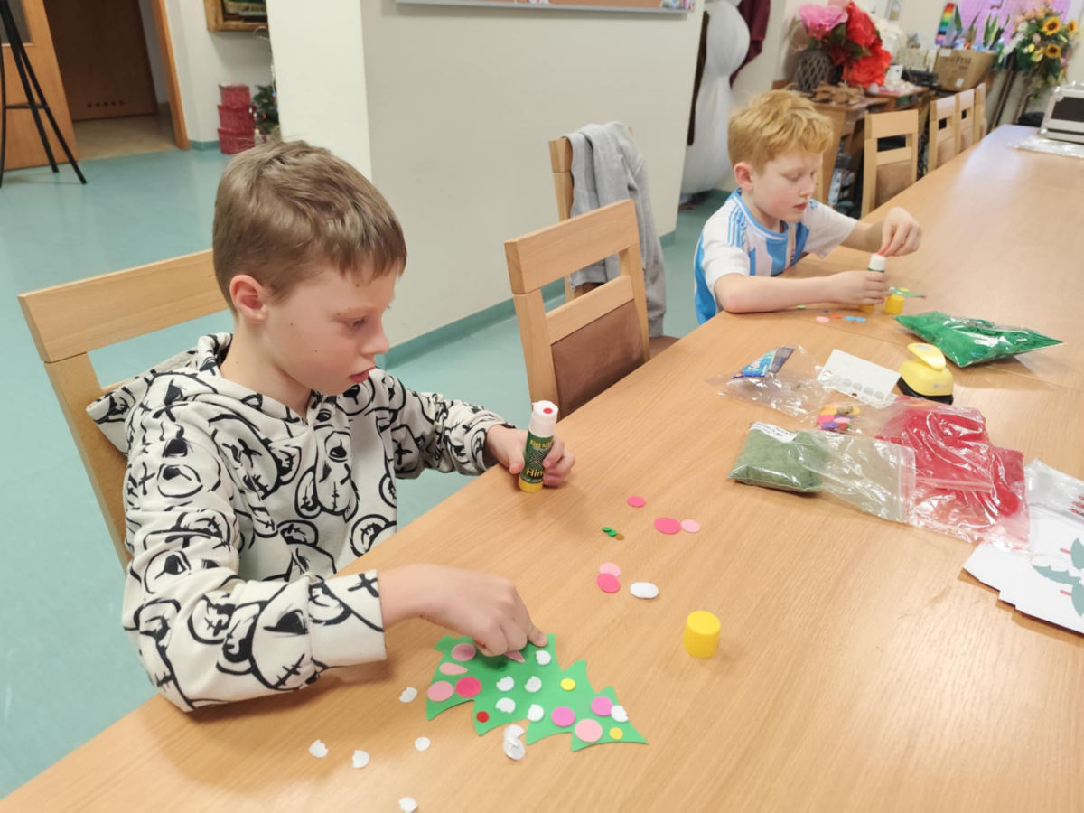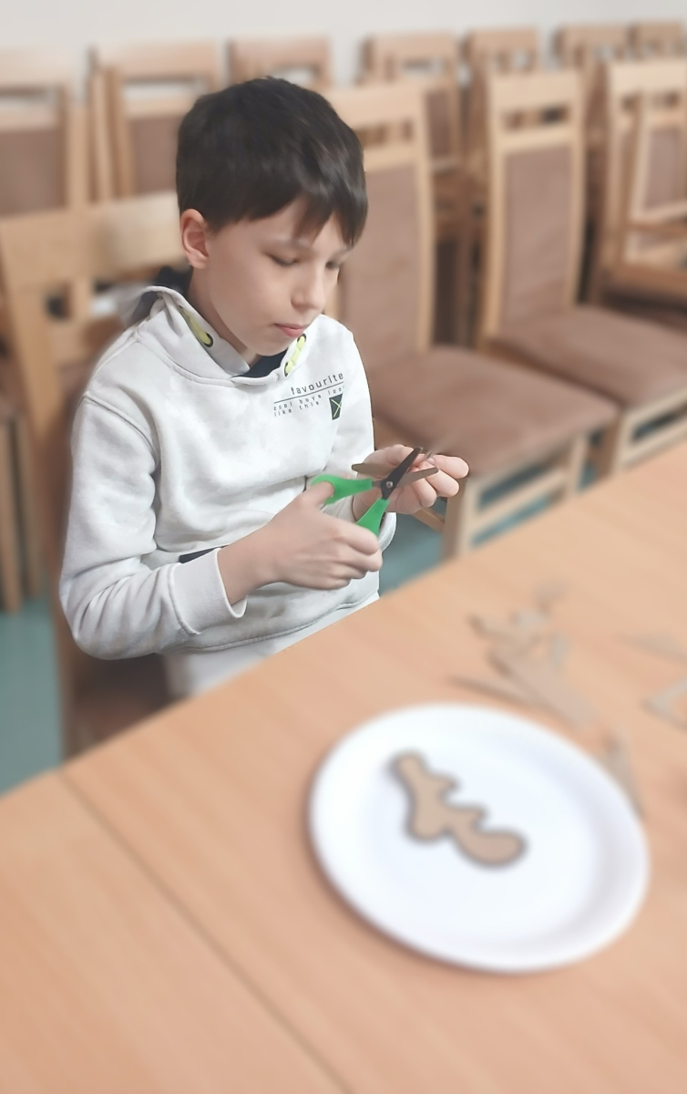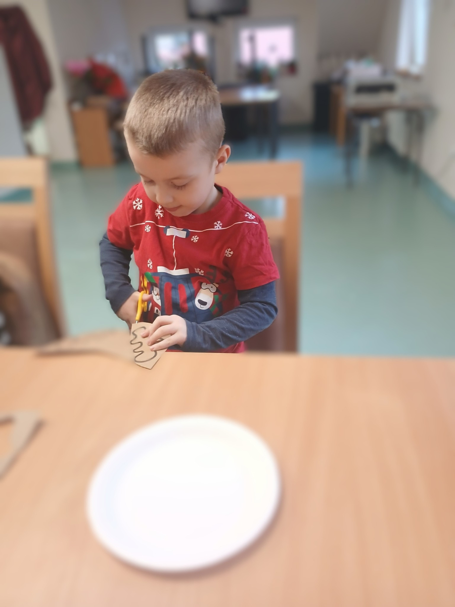 W czwartek skupiliśmy się na pracach plastycznych. Powstały różnorodne ozdoby świąteczne – choinki, bombki oraz inne dekoracje. Każda praca była wyjątkowa i niepowtarzalna, a kreatywność uczestników nie miała granic. Natomiast następnego dnia przy użyciu mazaków i dodatków zamieniliśmy zwykłe papierowe talerzyki w wesołe reniferki.