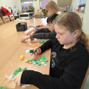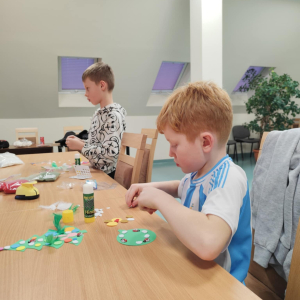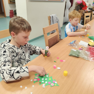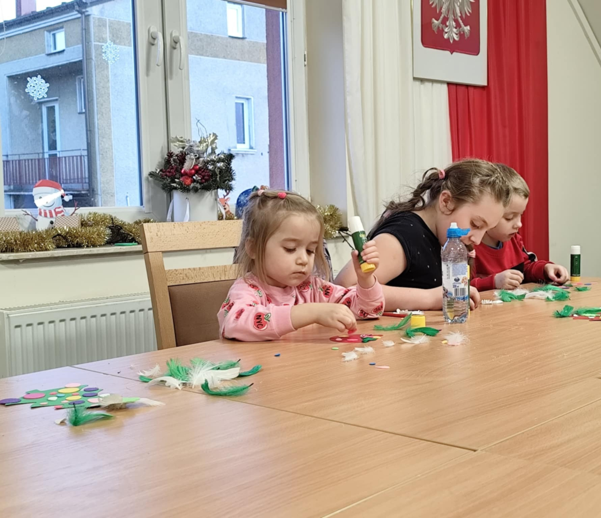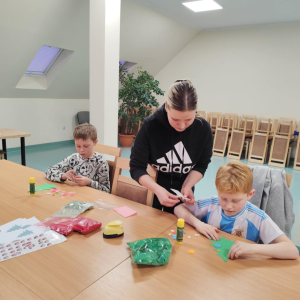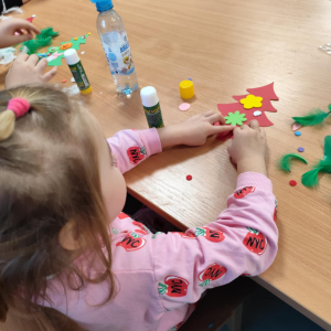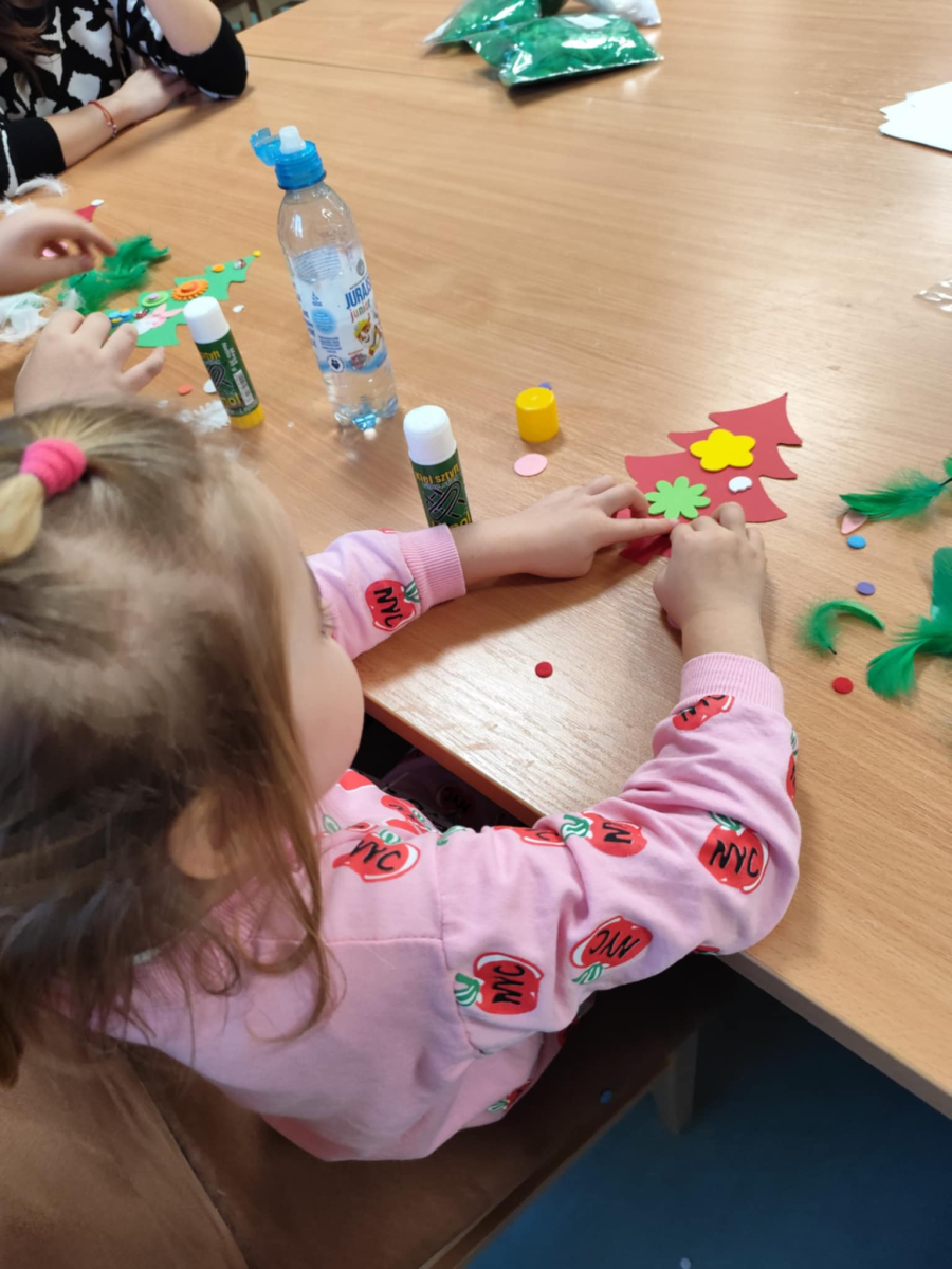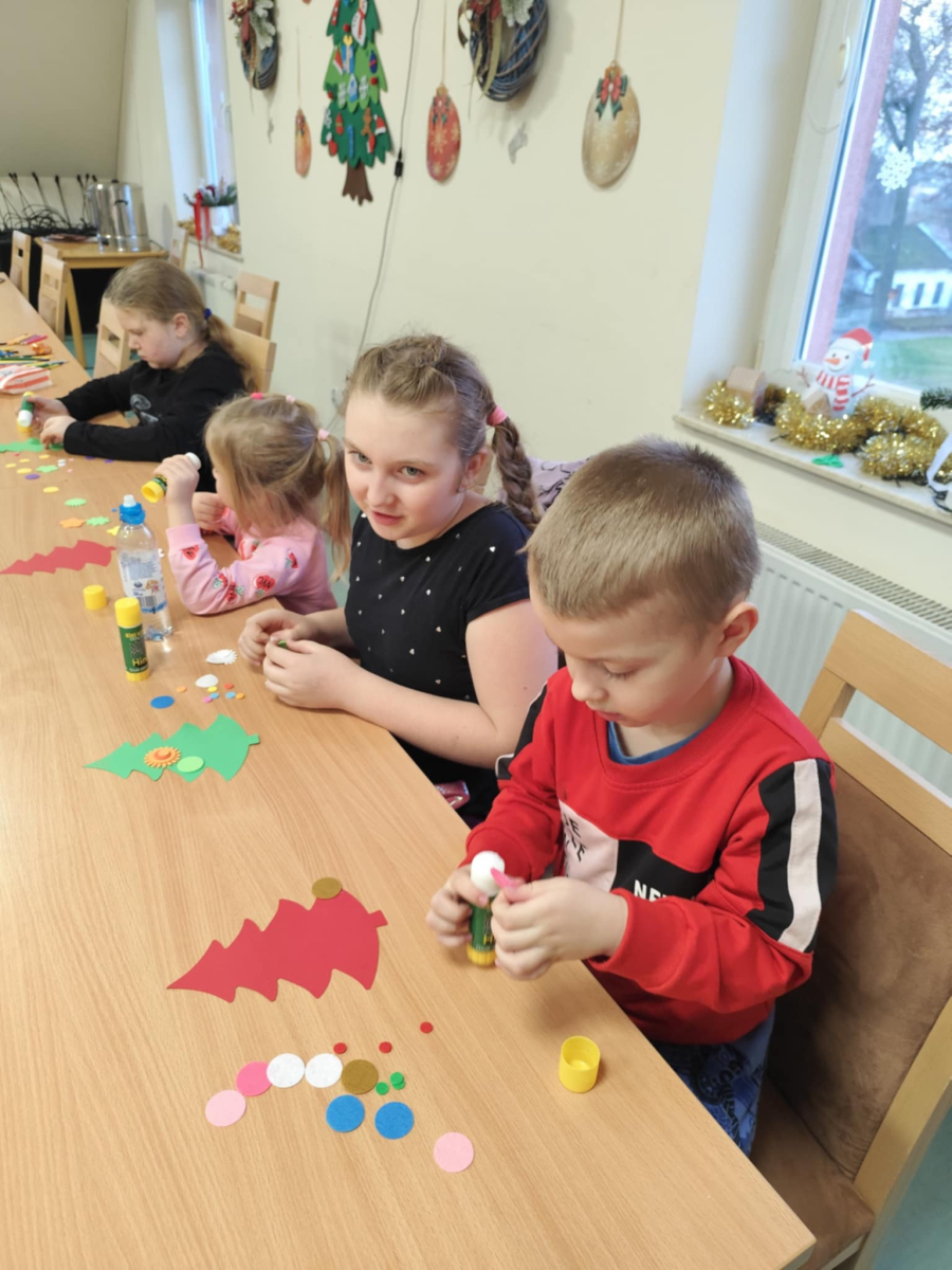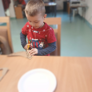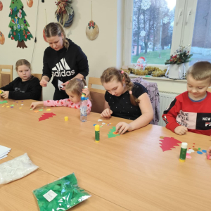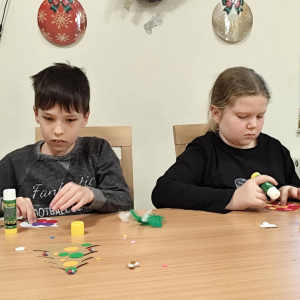 W czwartek skupiliśmy się na pracach plastycznych. Powstały różnorodne ozdoby świąteczne – choinki, bombki oraz inne dekoracje. Każda praca była wyjątkowa i niepowtarzalna, a kreatywność uczestników nie miała granic. Natomiast następnego dnia przy użyciu mazaków i dodatków zamieniliśmy zwykłe papierowe talerzyki w wesołe reniferki.