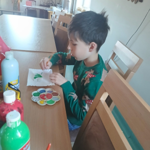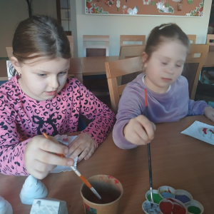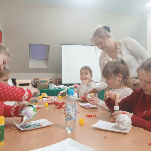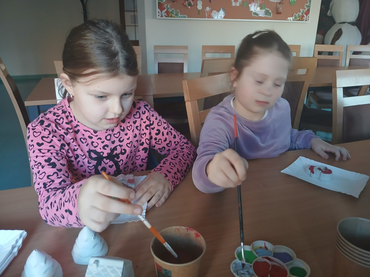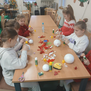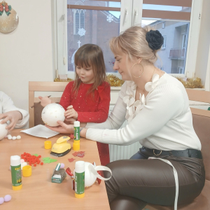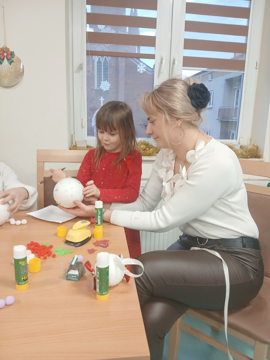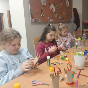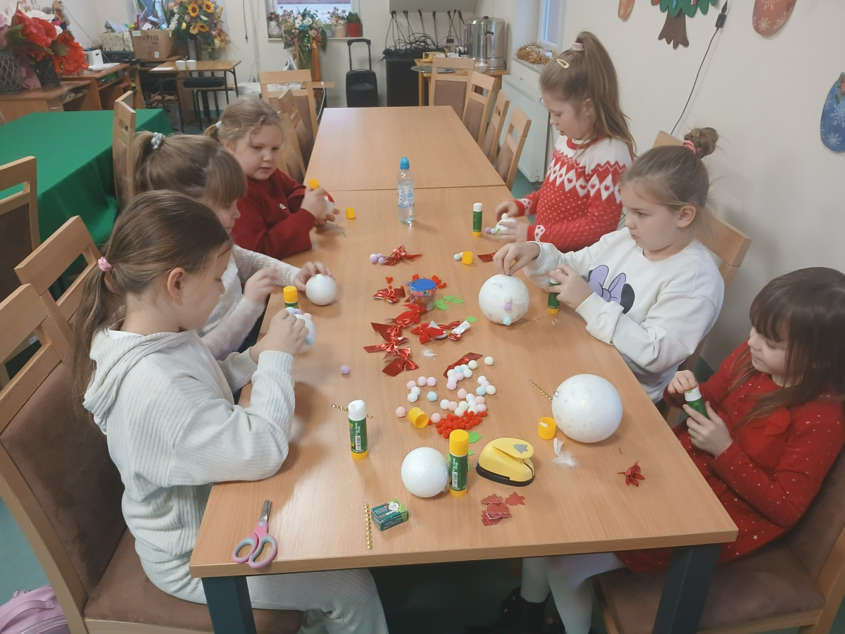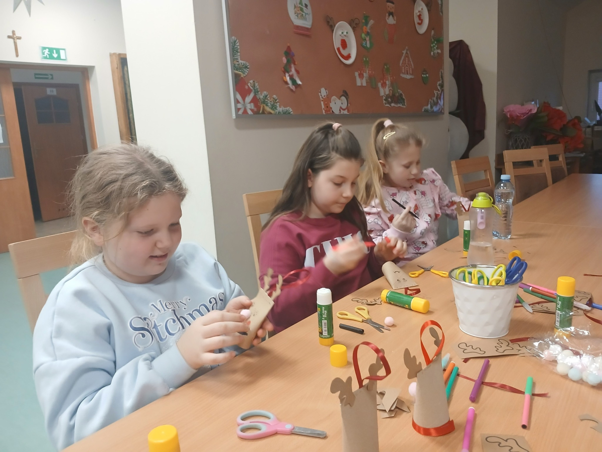 W środę dzieci z wielkim zaangażowaniem tworzyły kolorowe bombki, które mieniły się wszystkimi barwami. W czwartek pojawiły się urocze reniferki z rurek po papierze toaletowym – każdy miał swój niepowtarzalny charakter. Natomiast w piątek mali artyści zamienili się w malarzy i z radością ozdabiali gipsowe figurki. Było dużo śmiechu, kreatywności i świątecznej atmosfery!
