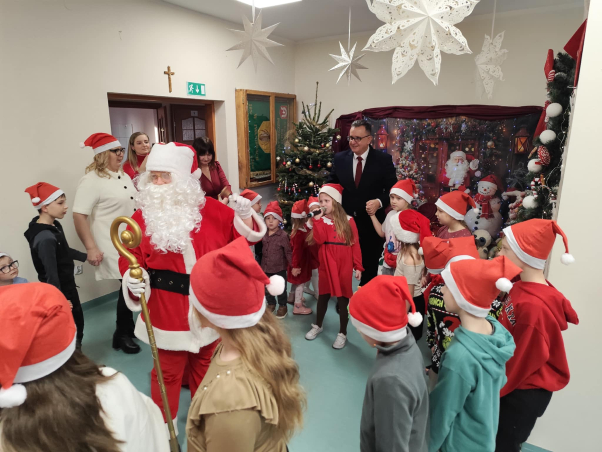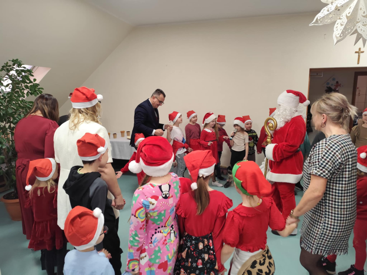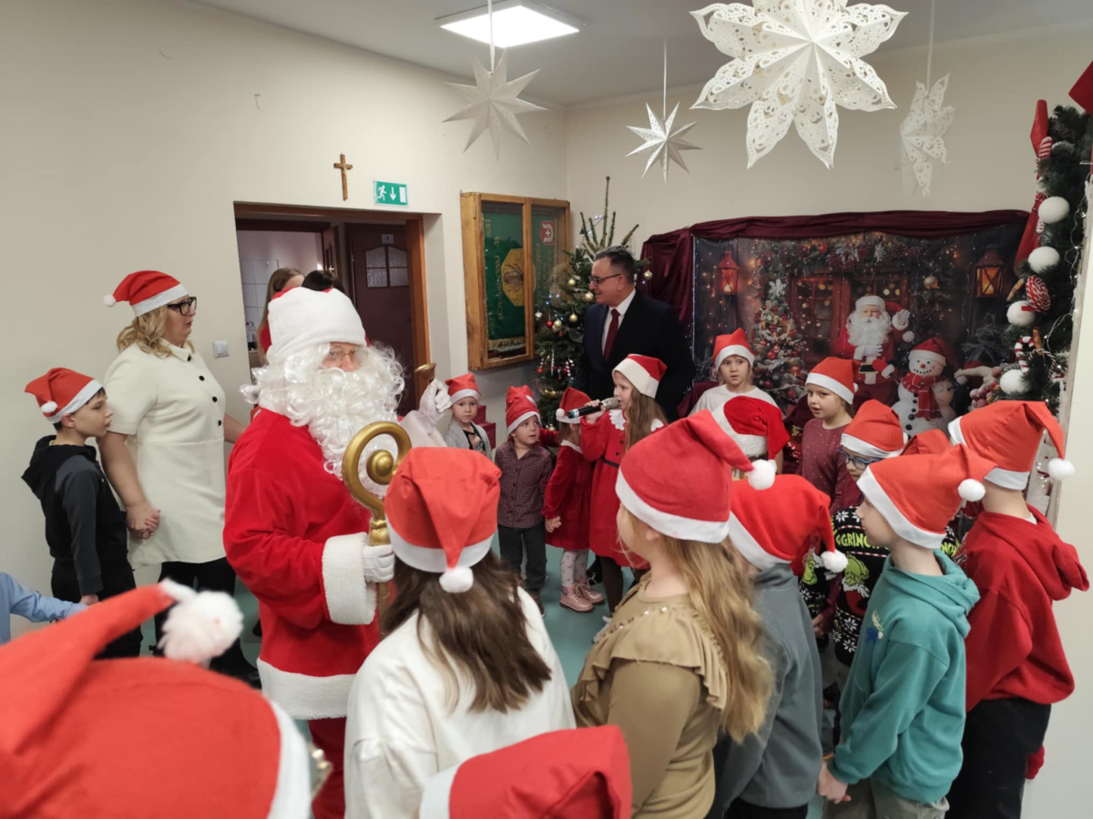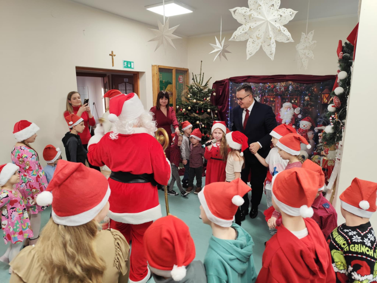 Dzisiejszy dzień w Gminnym Centrum Biblioteki i Kultury w Iwaniskach był pełen świątecznej radości i ciepła. Odwiedził nas wyjątkowy gość – Święty Mikołaj, a w wydarzeniu uczestniczył również Burmistrz Miasta i Gminy Iwaniska Marek Staniek, który z uśmiechem towarzyszył najmłodszym podczas zabawy.