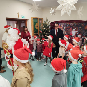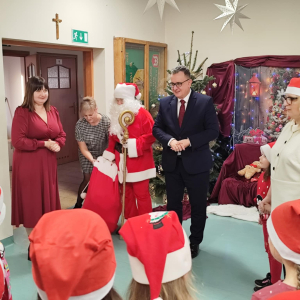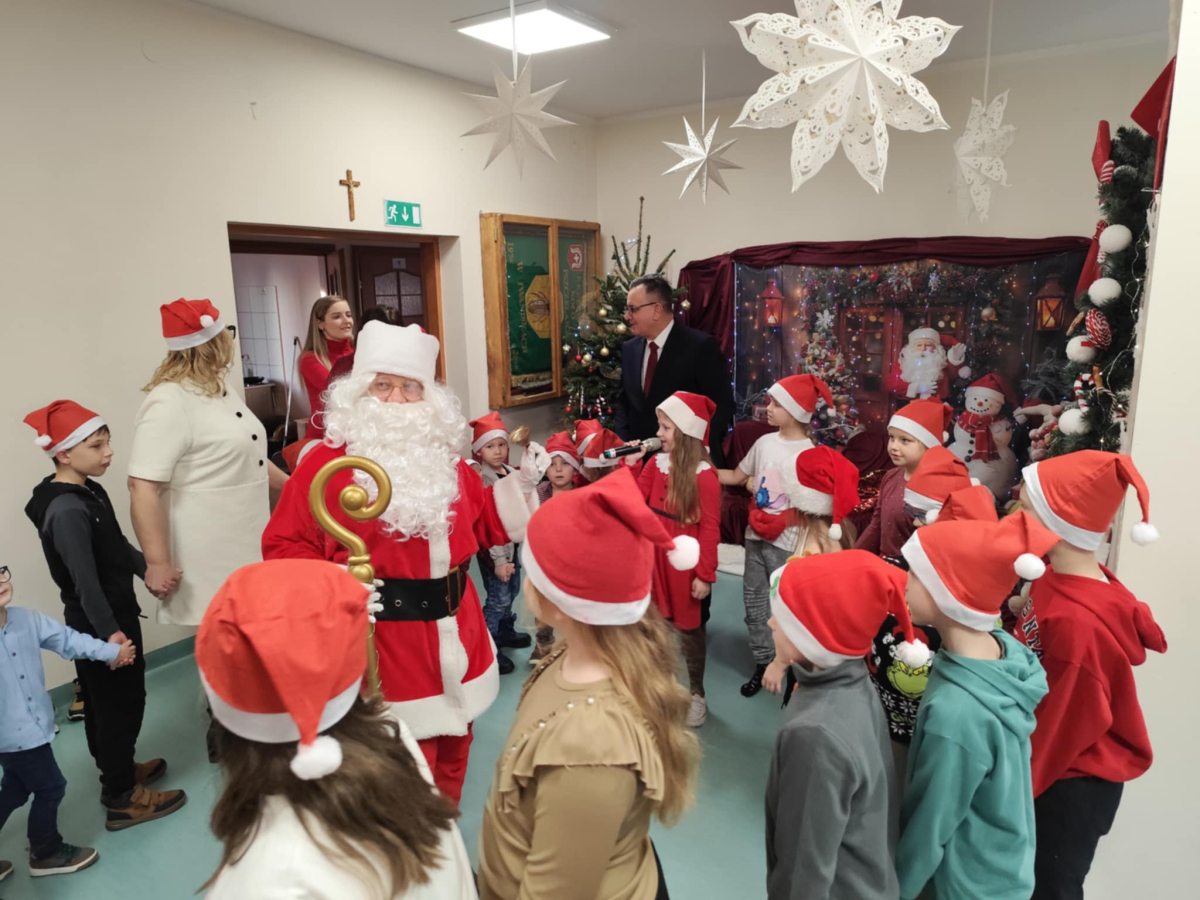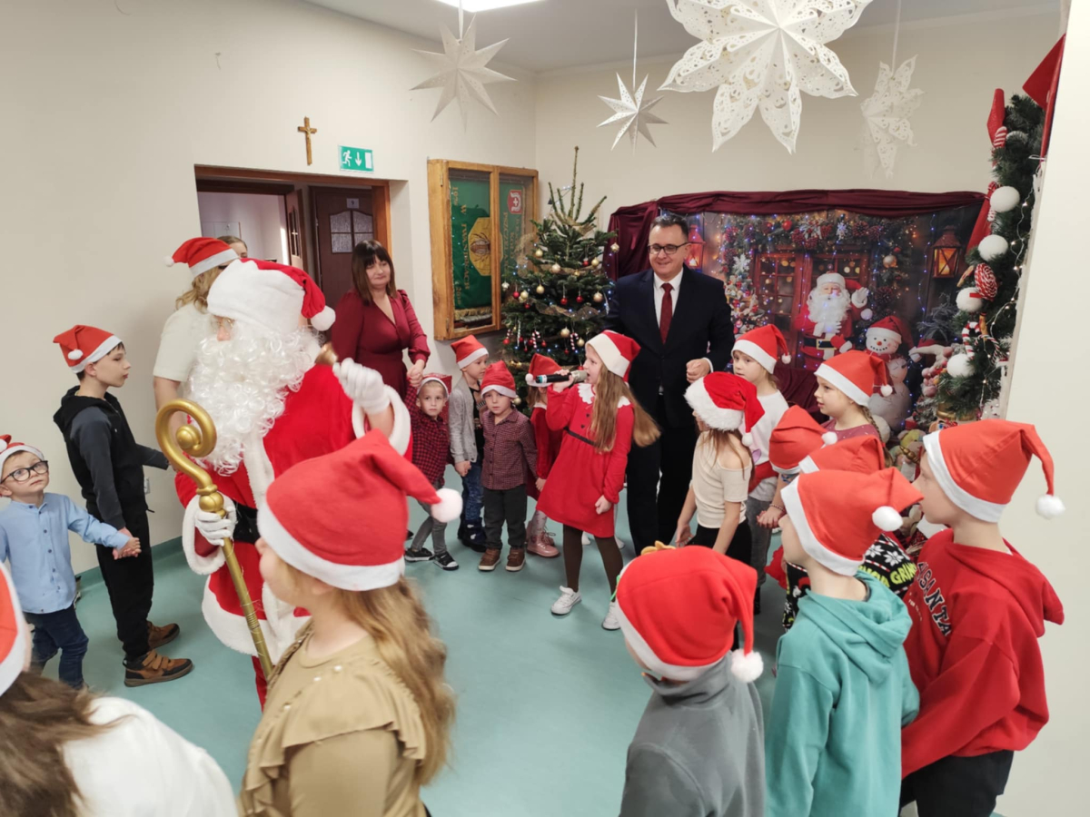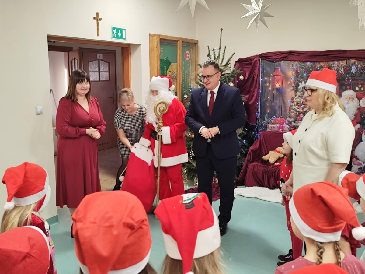 Dzisiejszy dzień w Gminnym Centrum Biblioteki i Kultury w Iwaniskach był pełen świątecznej radości i ciepła. Odwiedził nas wyjątkowy gość – Święty Mikołaj, a w wydarzeniu uczestniczył również Burmistrz Miasta i Gminy Iwaniska Marek Staniek, który z uśmiechem towarzyszył najmłodszym podczas zabawy.